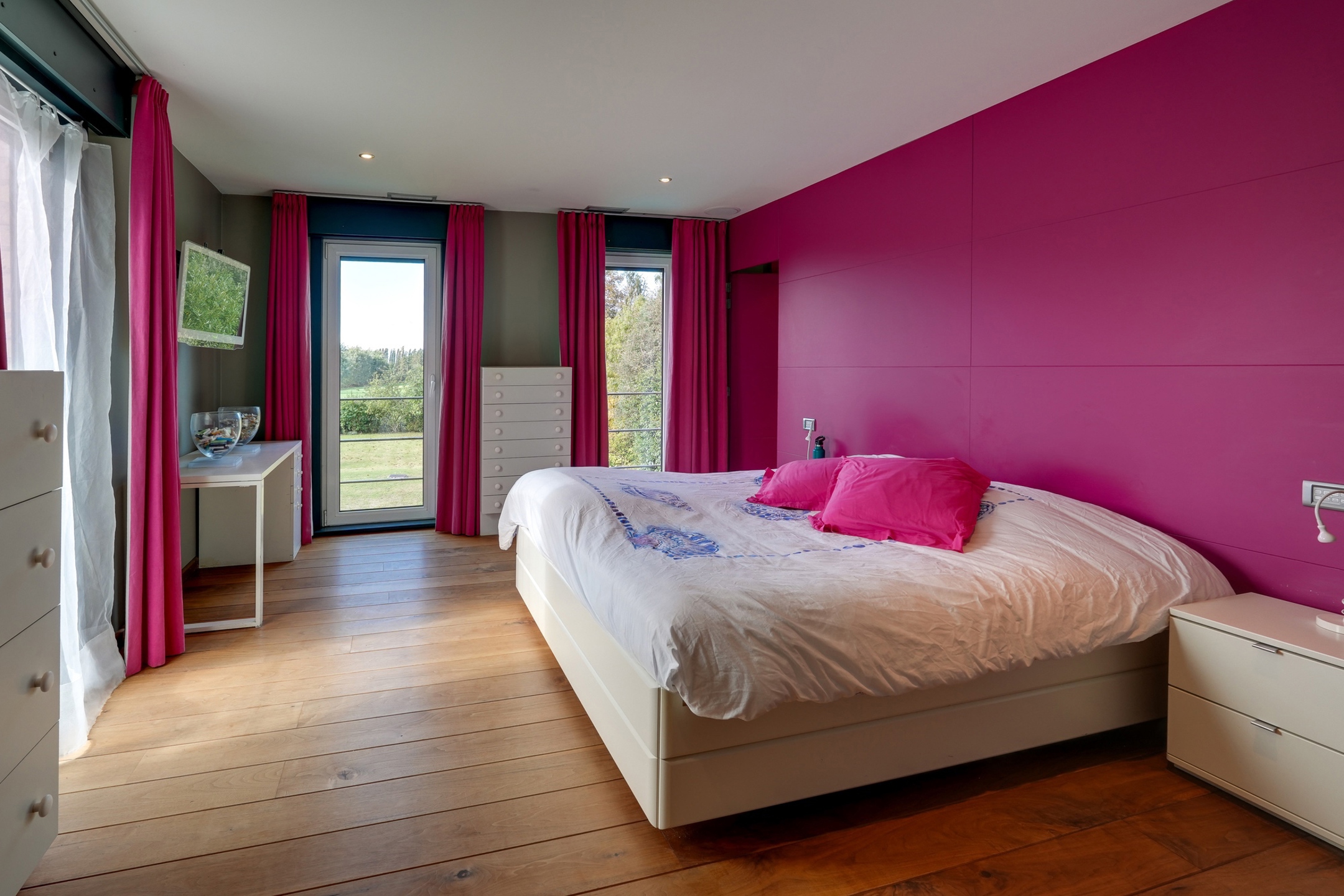 Chauffage au sol par pompe à chaleur avec forage au rez-de-chaussée et système d’air pulsé à l’étage, châssis en aluminium double vitrage, VMC double flux, système HiFi intégré, alarme, parquet massif.