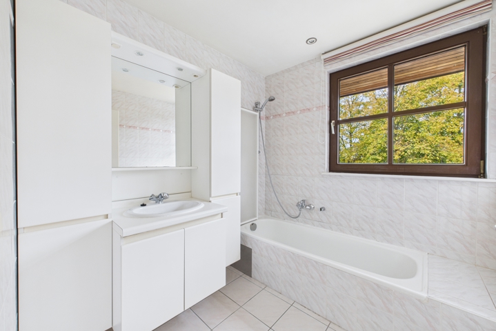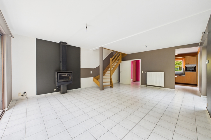 Au REZ: Hall d’entrée avec WC séparé mène vers un vaste salon lumineux habillé de carrelage, avec un escalier apparent. La cuisine équipée communique directement avec le garage.Au 1er étage: Hall de nuit distribue 3 chambres, une salle de bain carrelée avec baignoire-douche et meuble lavabo, un WC séparé ainsi qu’un grenier isolé accessible via escalier escamotable. Les [..]