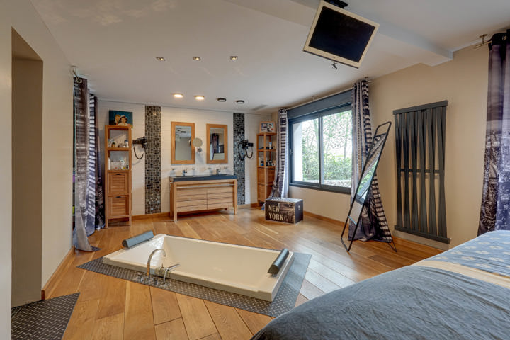 Il se compose également d`une chambre, d`une suite parentale avec bain, double vasque, douche à l`italienne et dressing, d`une salle de sport, d`une buanderie, et d`un studio ou d`un espace idéal pour une activité professionnelle.