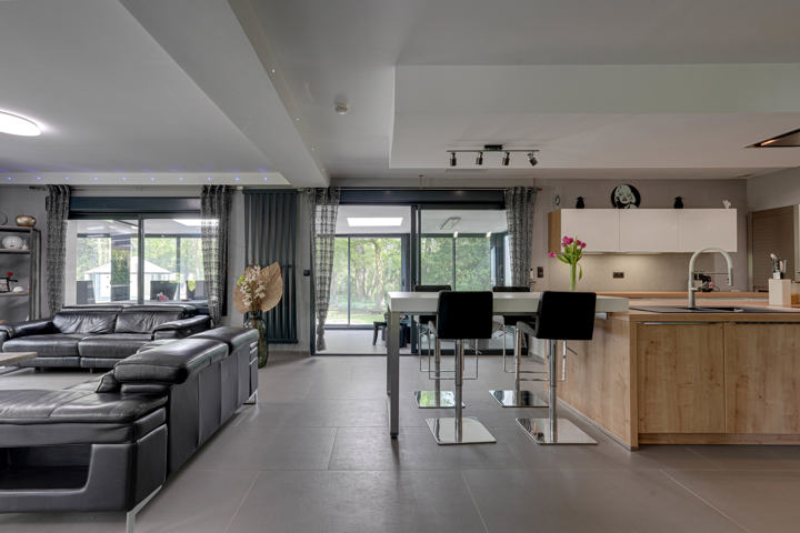 L`habitation est de plain-pied, et se distingue par un vaste séjour avec cuisine ouverte de 74m² et d`une véranda de 30m² !