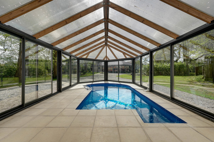Extérieurs : Triple garage de 26, 20 et 20m², vaste jardin arboré, parking, étang, piscine couverte chauffée avec pompe à chaleur, portail motorisé.