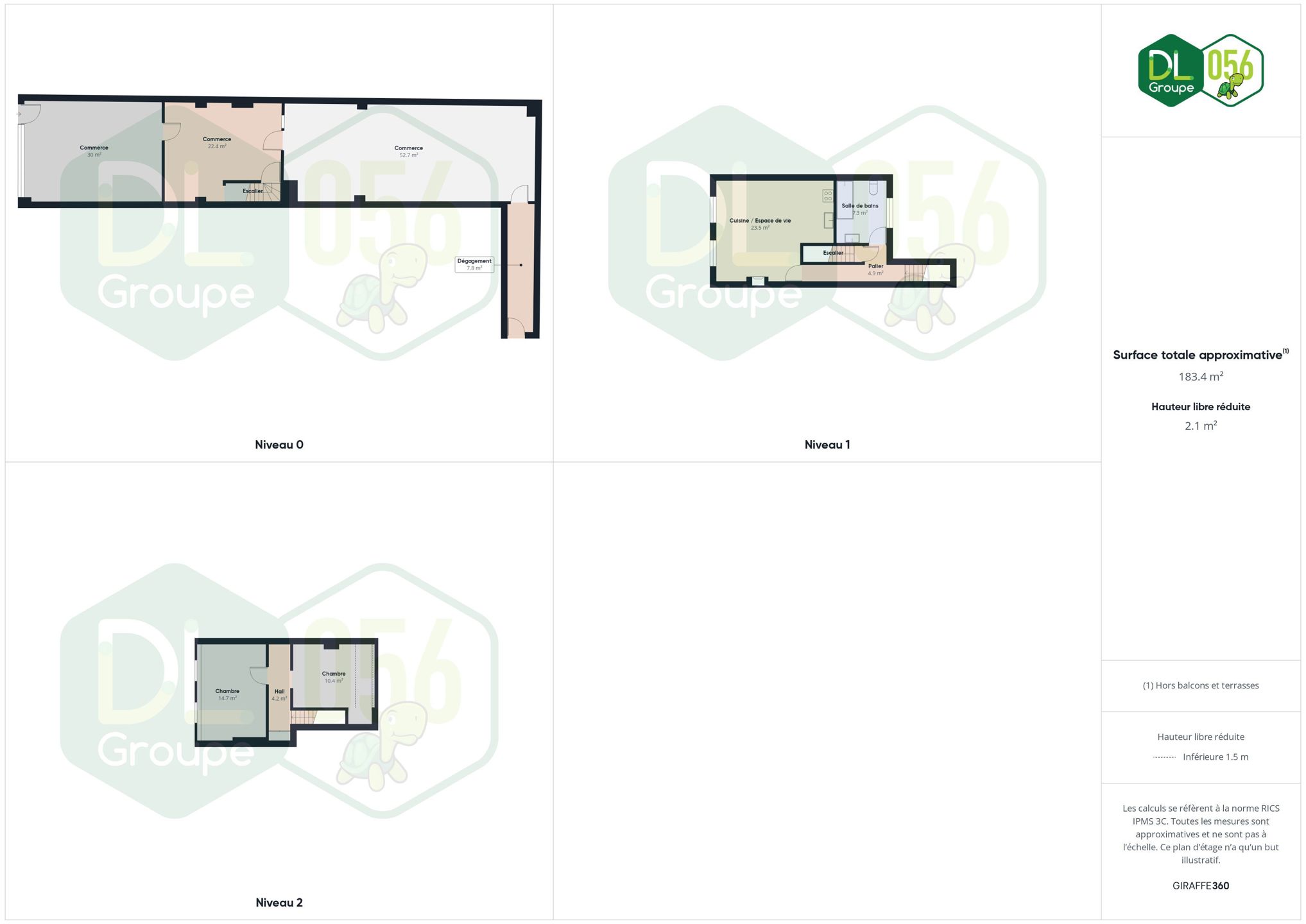 Au 1er étage : Hall desservant une un séjour de 24m², une salle de bains composée d’une baignoire/douche, d’un meuble lavabo et d’un WC. Grenier de rangement au-dessus de l’atelier.