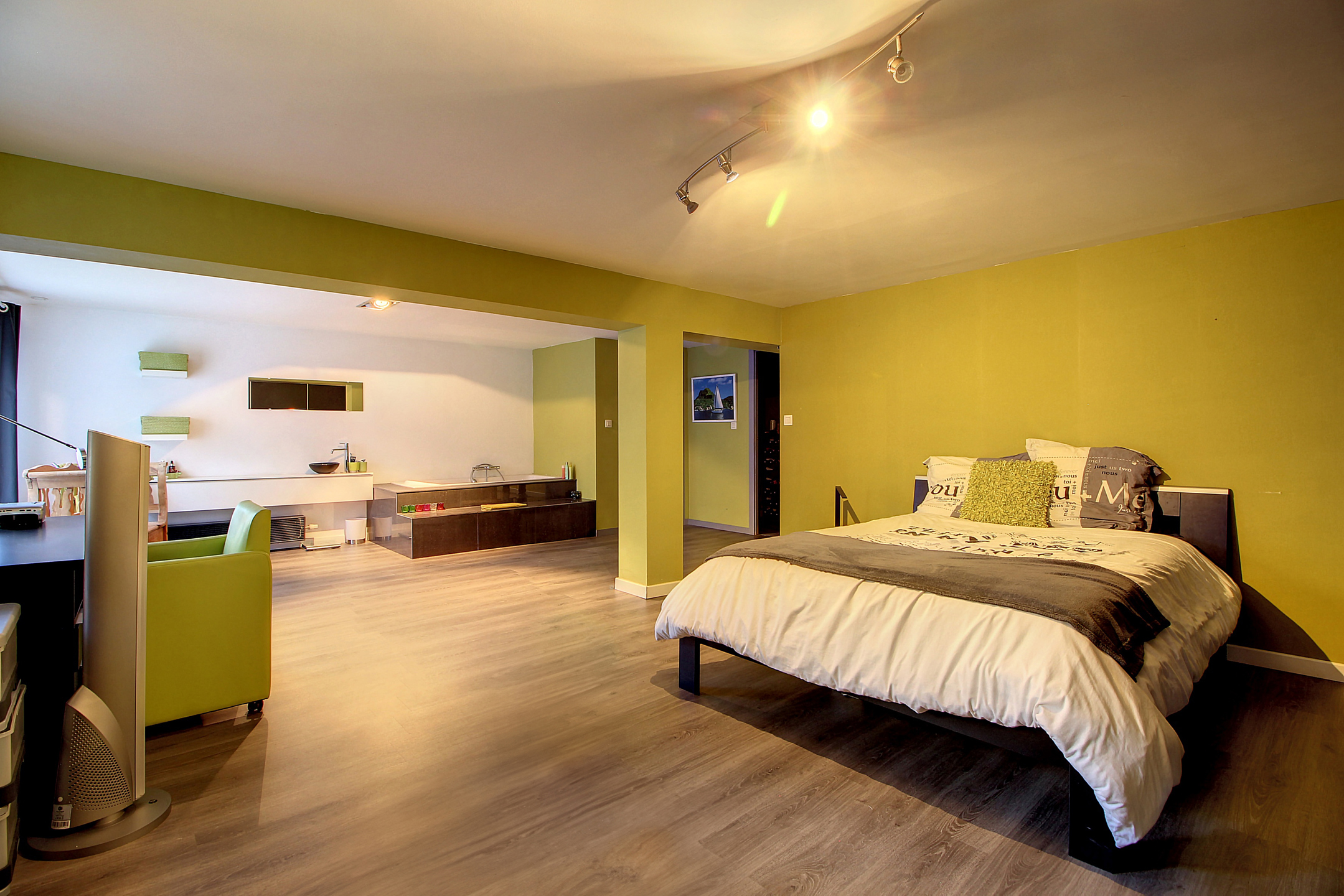 Ce bien unique comprend également un appartement indépendant d’une chambre, doté d’un séjour de 45m², d’une cuisine équipée ouverte, d’une salle de bains avec baignoire/douche, d’un meuble lavabo et d’un WC, ainsi qu’une chambre à coucher de 13m² et d’un dressing.