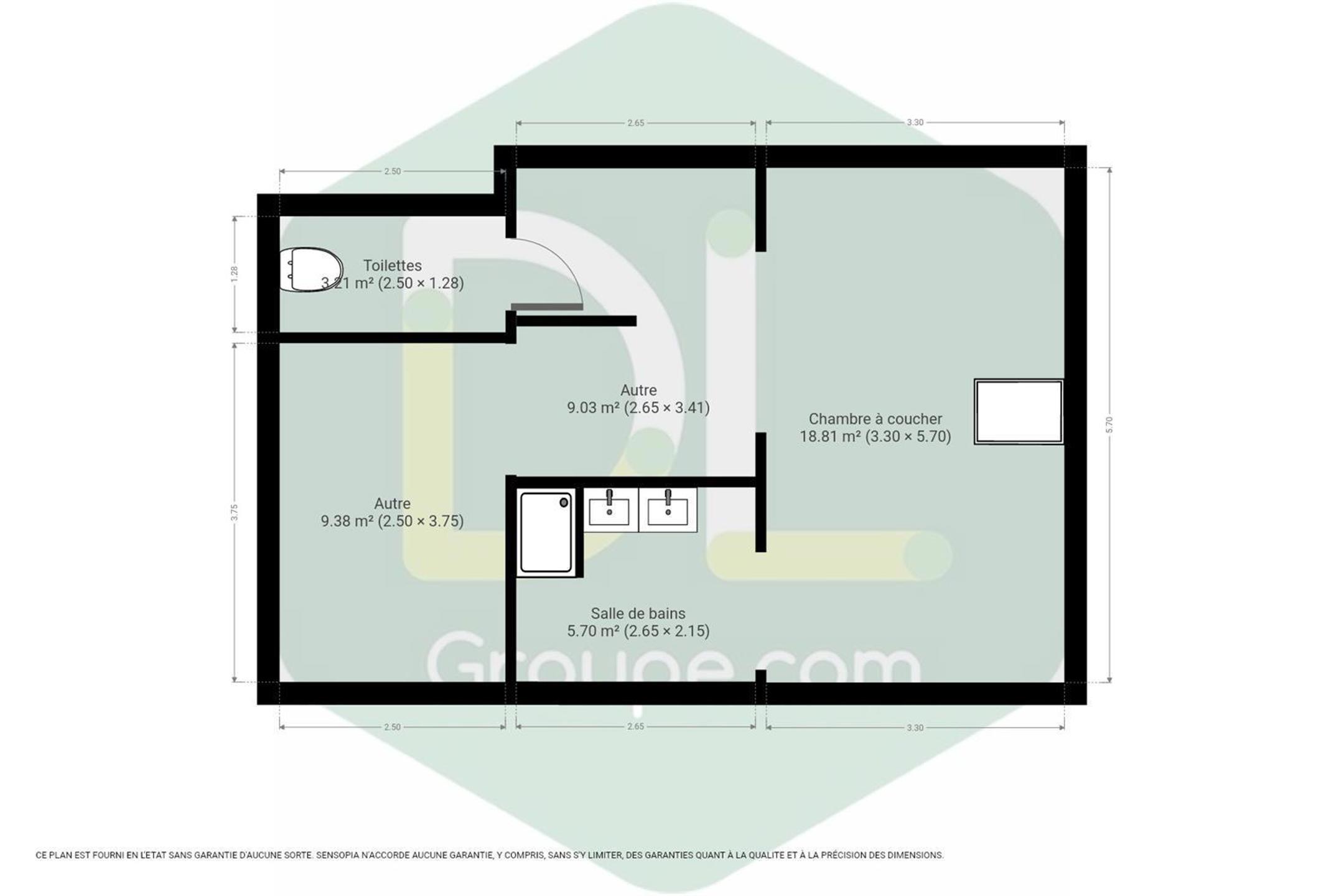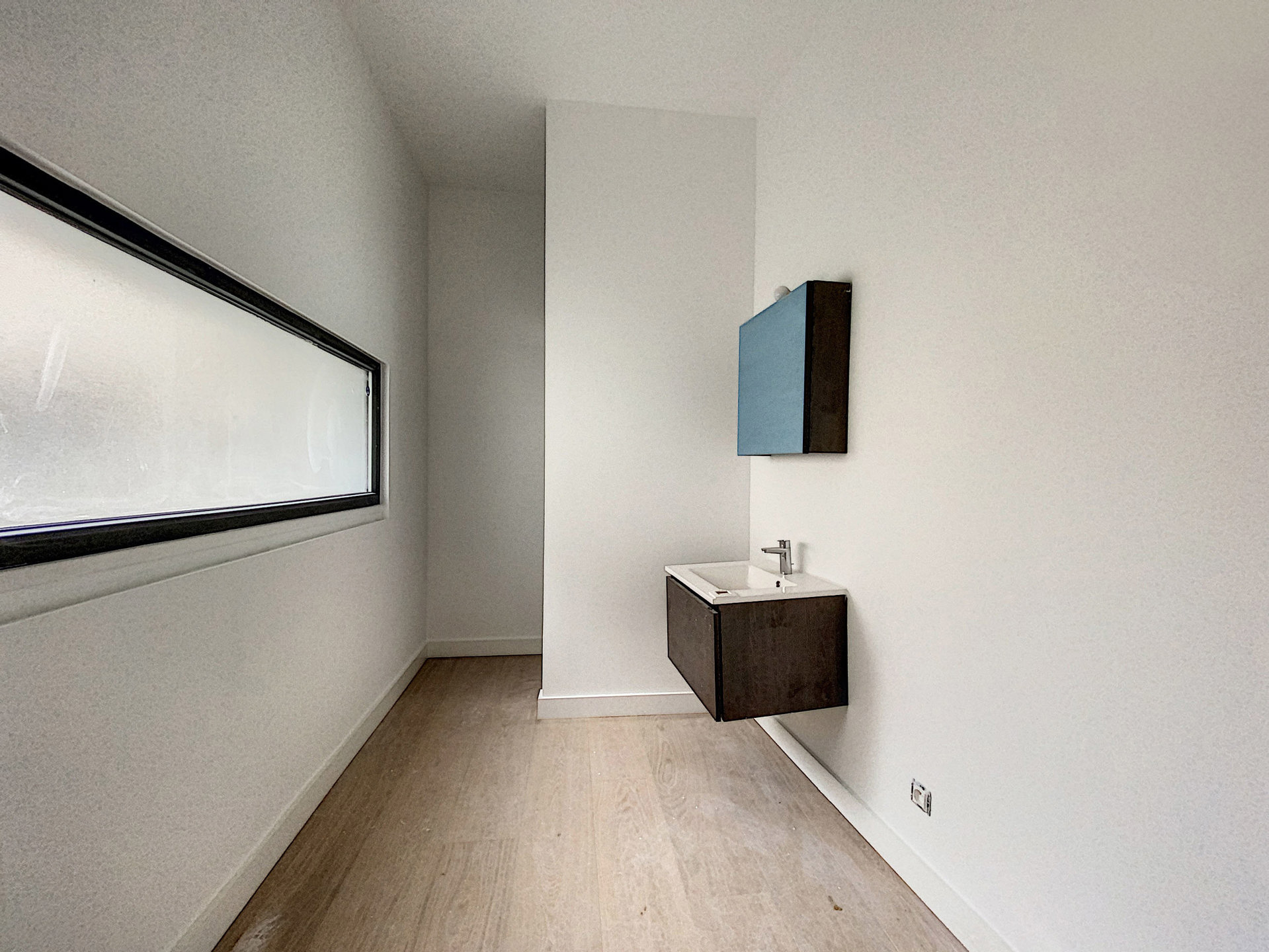 Il offre un espace de vie généreux incluant un spacieux séjour (pouvant servir de salon et de chambre), une cuisine équipée moderne, une salle de bain avec douche et meuble vasque, ainsi qu`un WC séparé.