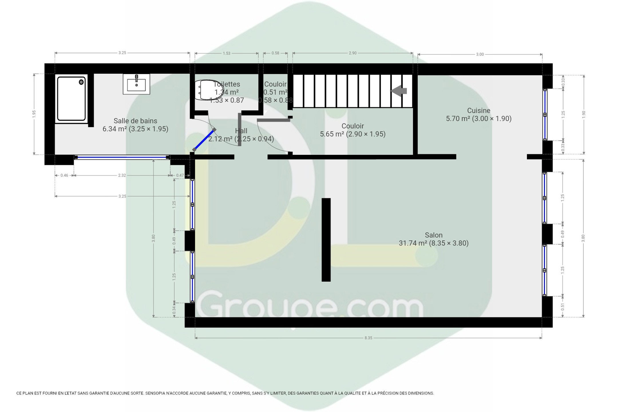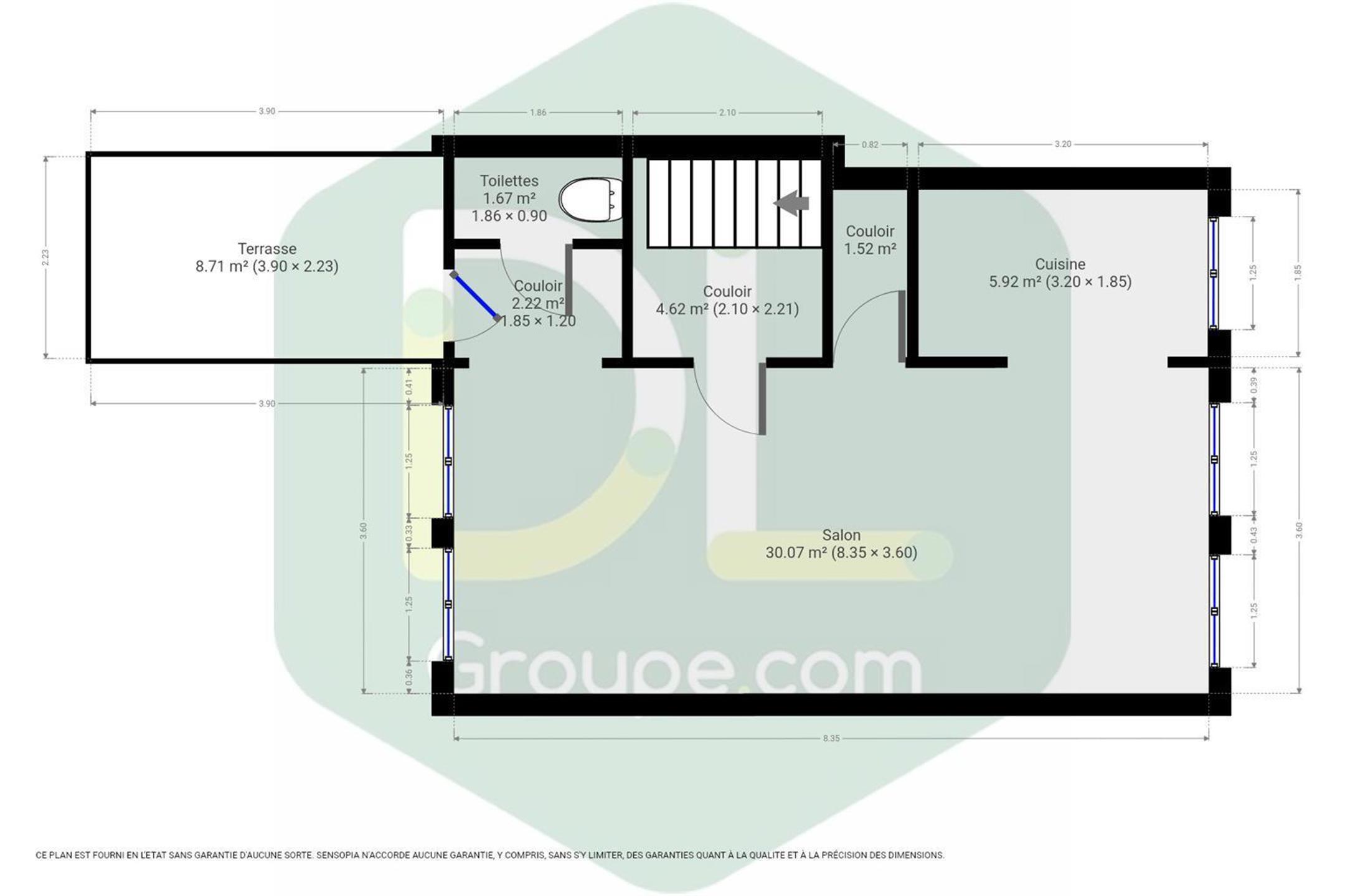 Le premier niveau accueille un hall d`entrée, un séjour lumineux de 30 m², une cuisine équipée, un WC séparé, ainsi qu`une terrasse agréable pour profiter des beaux jours.