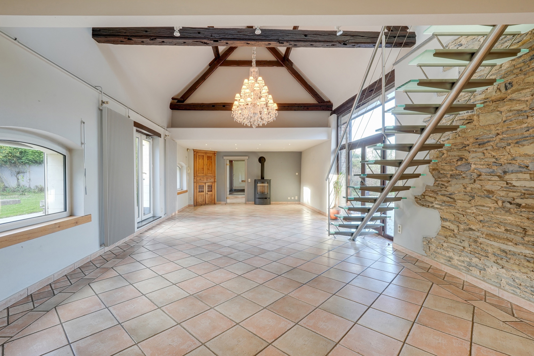 Le rez-de-chaussée se compose d`un côté d`un vaste salon/séjour traversant de 60m², avec une cuisine semi-ouverte attenante et un bureau en mezzanine qui permet l`accès à une 1ère chambre avec point d`eau. De l`autre, vous y trouverez une buanderie, et un double espace professionnel de 23 et 27m² avec accès distinct, sans vis-à-vis sur le jardin, idéal pour une activité libérale/professionnelle ou pour y aménager une suite parentale.