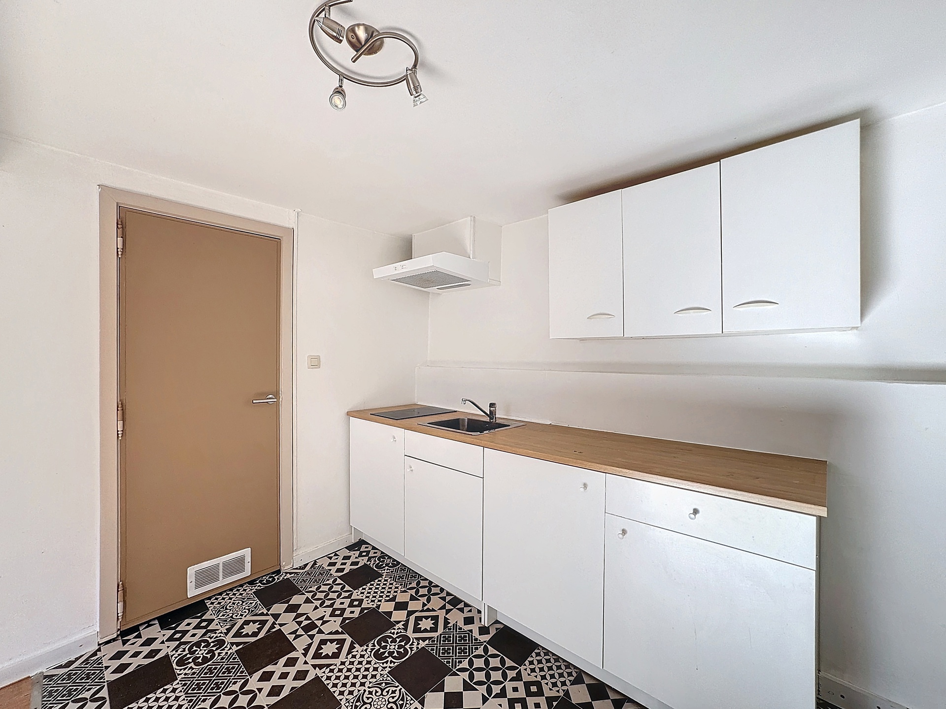 Quatrième appartement : Lumineux séjour (salon et salle à manger), une cuisine avec plaque de cuisson, hotte, rangements, une salle de bains composée d’une douche, d’un meuble lavabo et un WC séparé, une chambre à coucher. Actuellement loué 475€ + 25€ de charges.