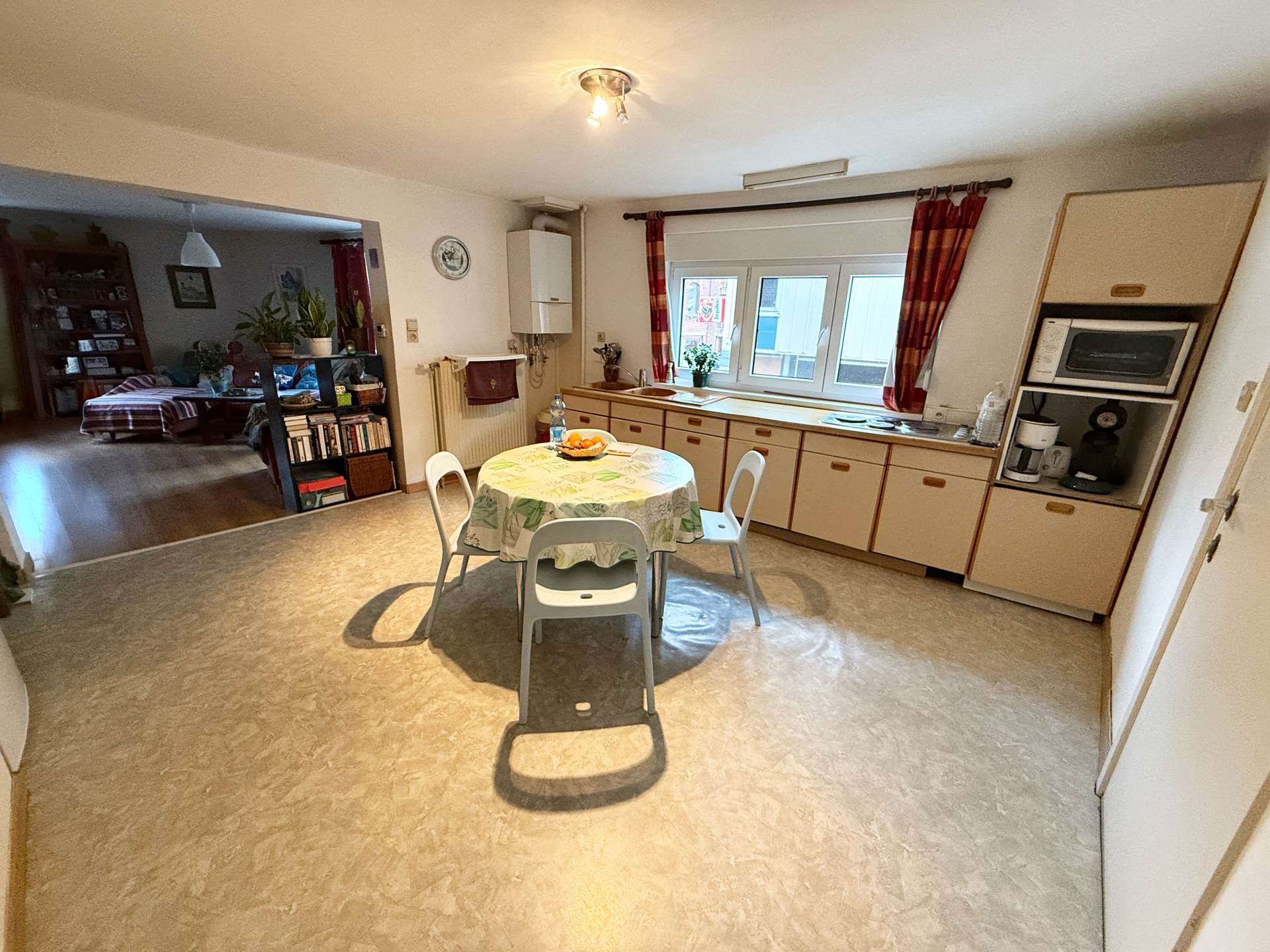 Chauffage central au gaz, châssis en bois double vitrage.