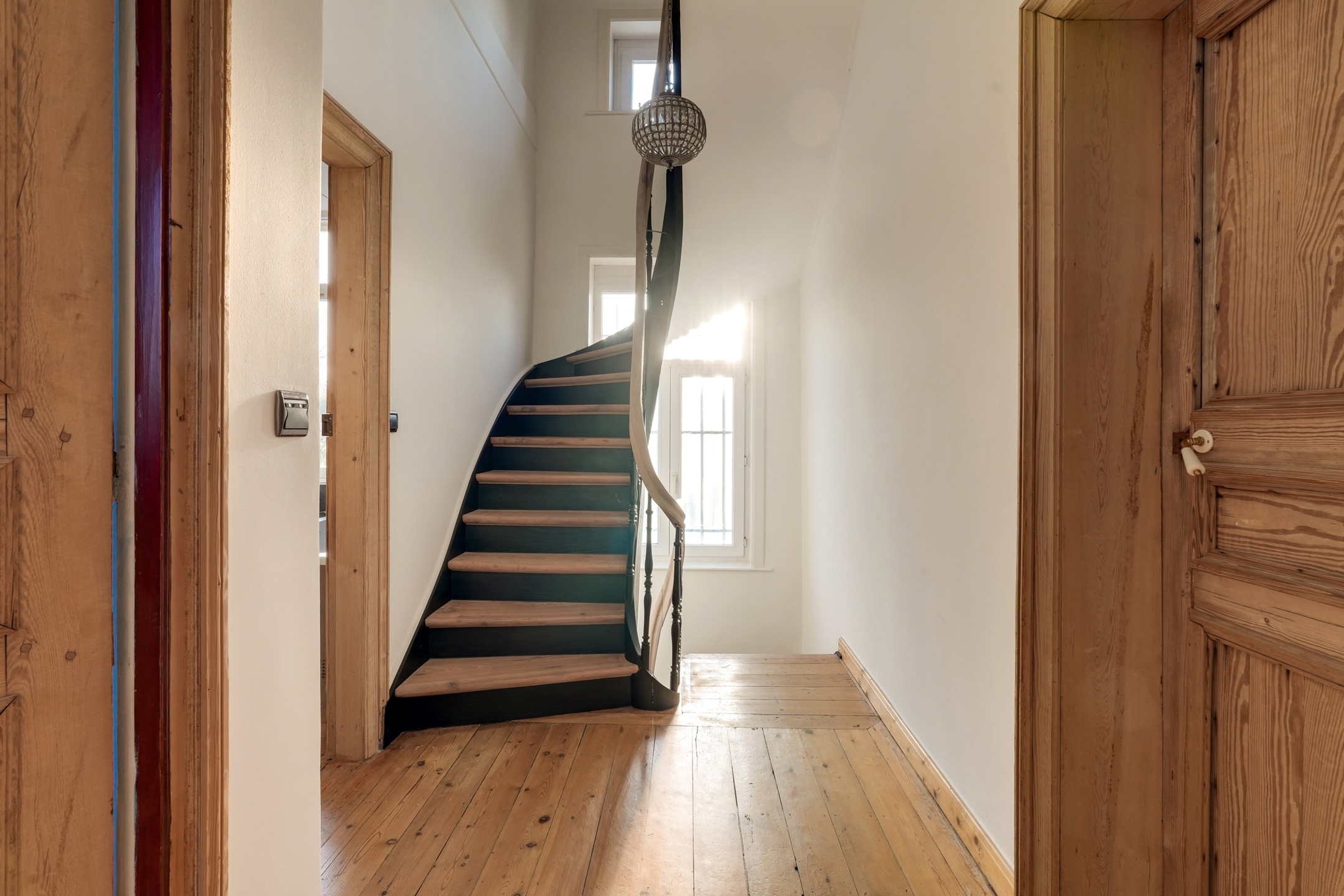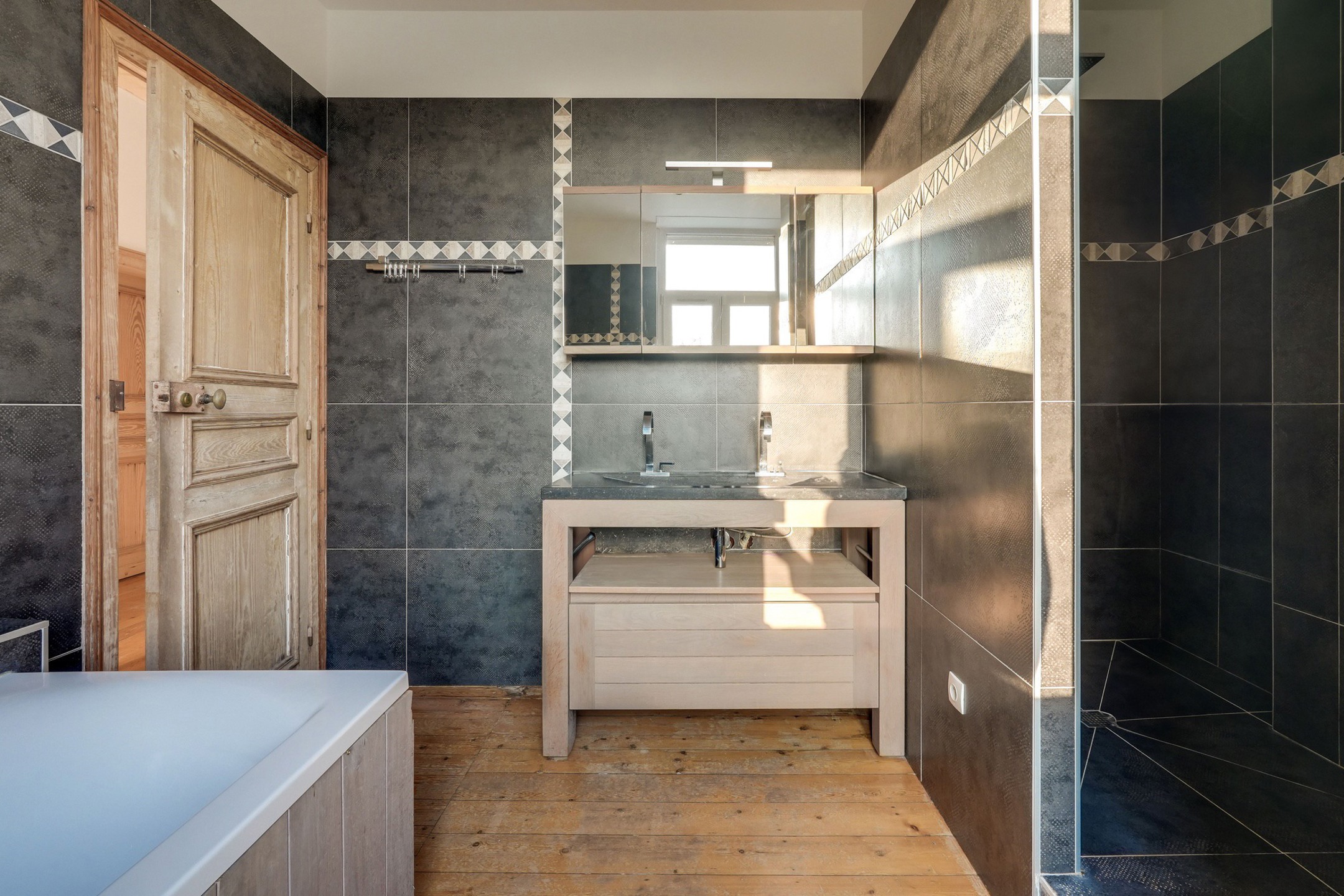 Le deuxième étage abrite deux grandes chambres spacieuses et une seconde salle de bain, également dotée d`une baignoire, d’une douche, d’un WC et d’un lavabo double vasque.