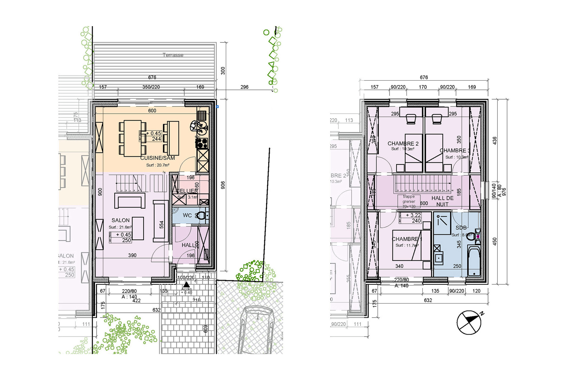 Les surfaces indiquées ne sont pas des surfaces habitables mais des surfaces brutes, selon le code de mesurage appliqué en Belgique