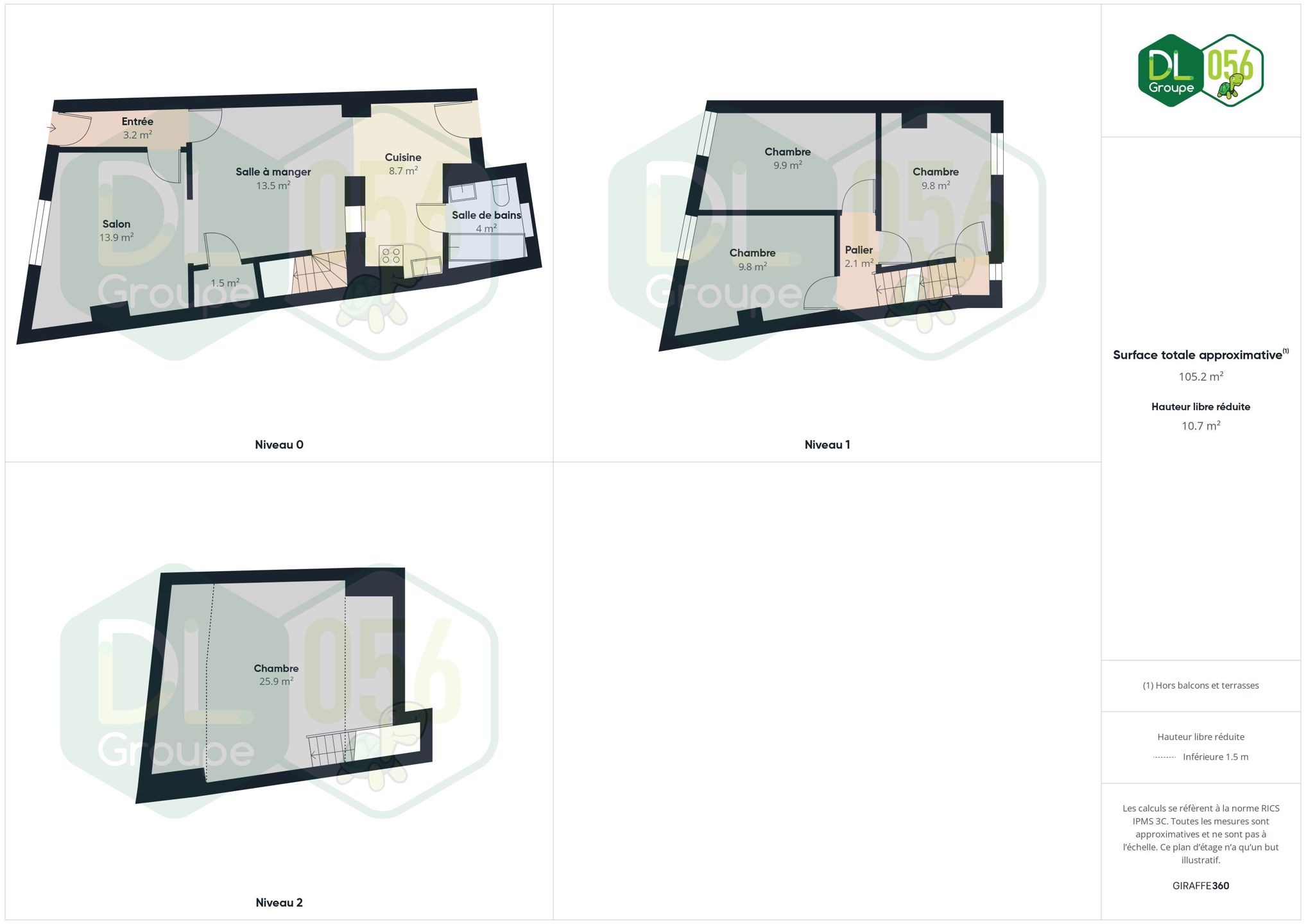 Hall d`entrée, séjour avec salon et salle à manger. Espace de stockage sous l`escalier;Cuisine semi-équipée avec four, plaque au gaz, hotte, évier en inox, emplacement frigo et machine à laverSalle de bain faïencée avec baignoire, lavabo et wcBelle terrasseA l`étage: 3 belles chambres et grenier aménagé en une 4ème chambre.Caractéristiques :Maison idéal premier achat ou [..]
