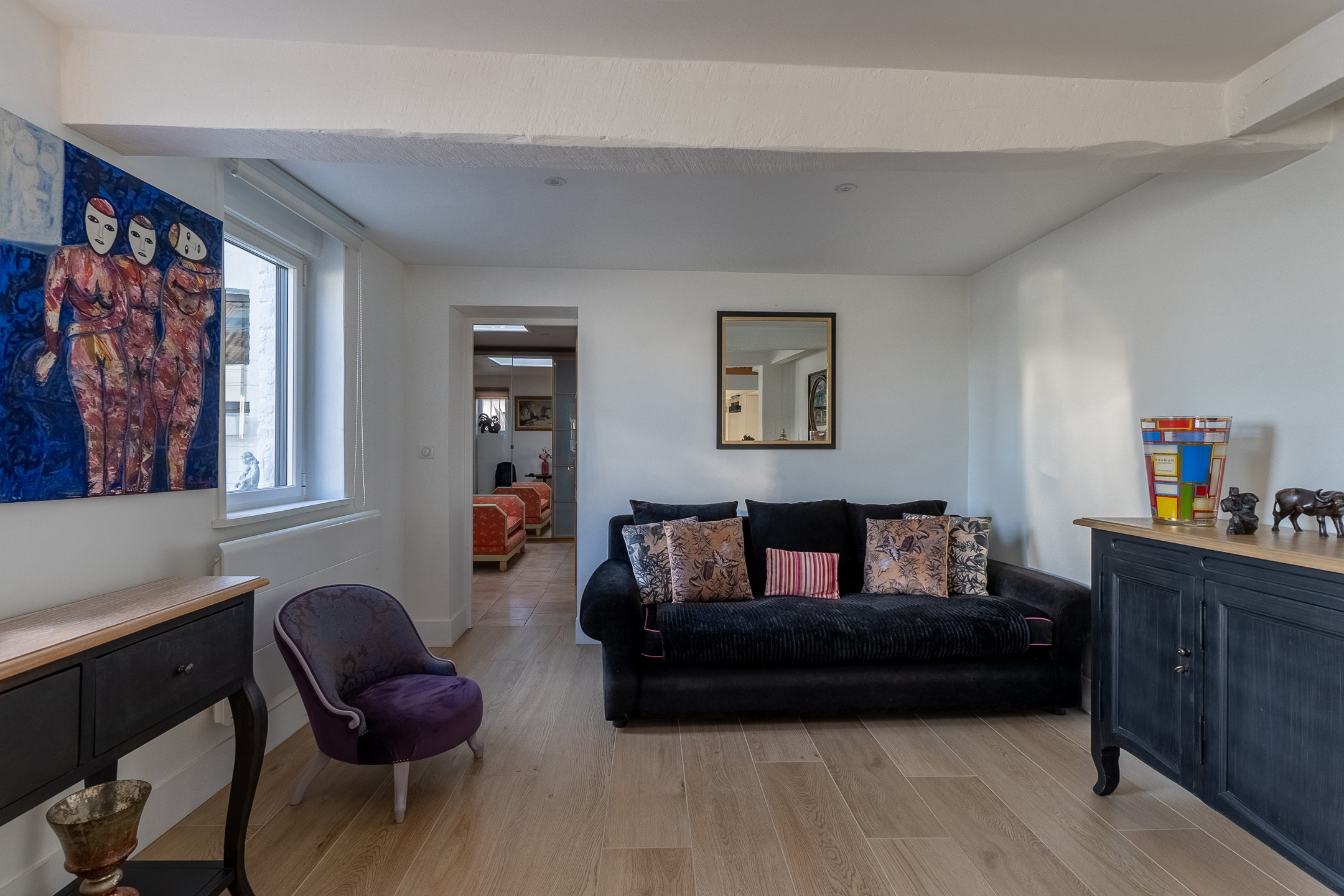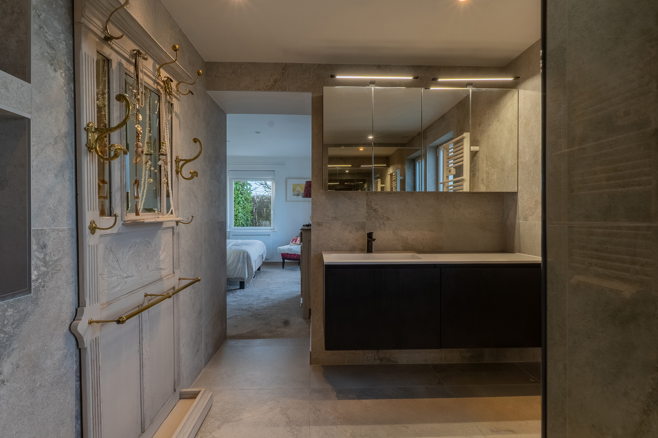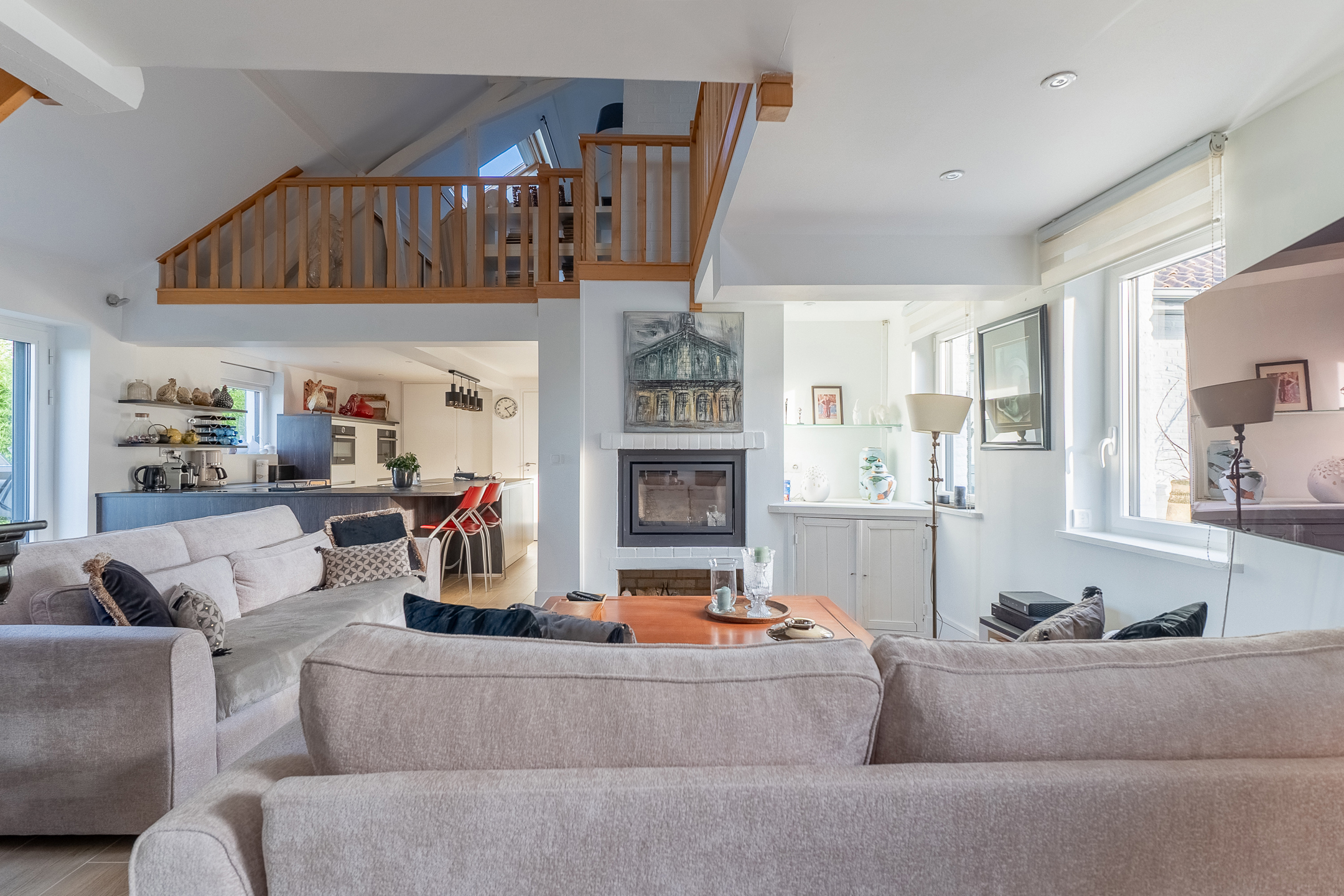 Het centrale gedeelte biedt twee slaapkamers, een badkamer en een mezzanine die gebruikt kan worden als studeerkamer of ontspanningsruimte.