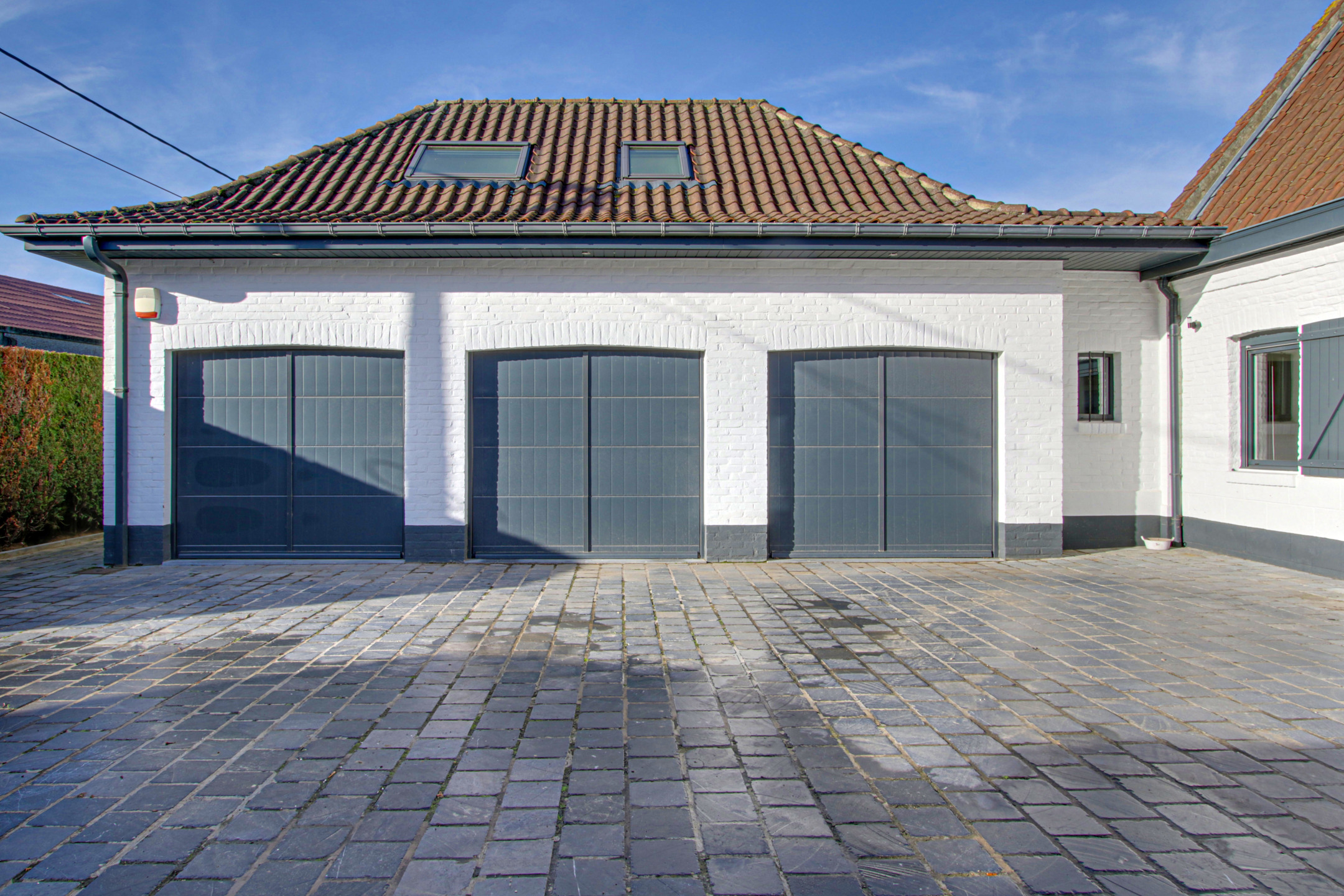 Garage voor 3 auto`s, aluminium kozijnen met inbraakwerende dubbele beglazing, gemotoriseerde rolluiken, elektrische verwarming, 36 zonnepanelen.