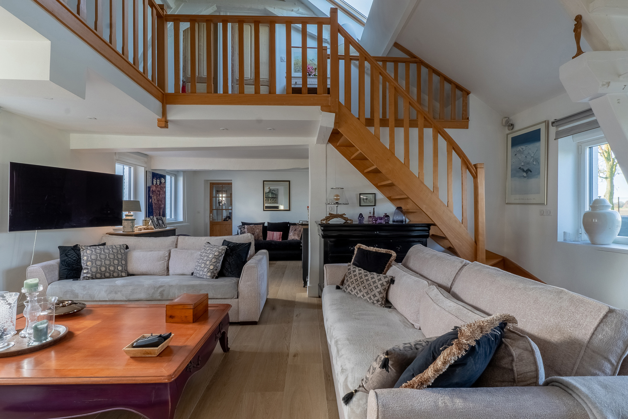 Ontdek deze charmante gerenoveerde boerderij, ideaal voor uw familie of zakelijke behoeften. Genesteld te midden van de velden.Begane grond:De ingang geeft uit op een grote leefruimte van 60 m², bestaande uit een eetkamer, een ingerichte keuken en een gezellige zitkamer. Er is ook een aparte studeerkamer, een gewelfde kelder en een bijkeuken.De linkervleugel herbergt een master suite [..]