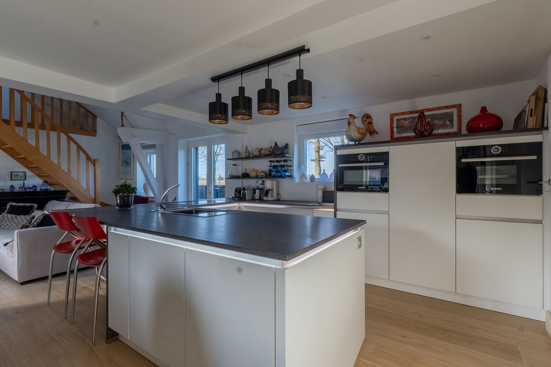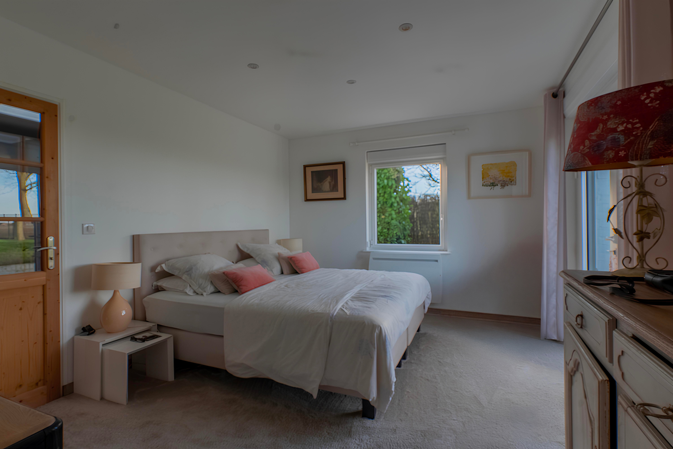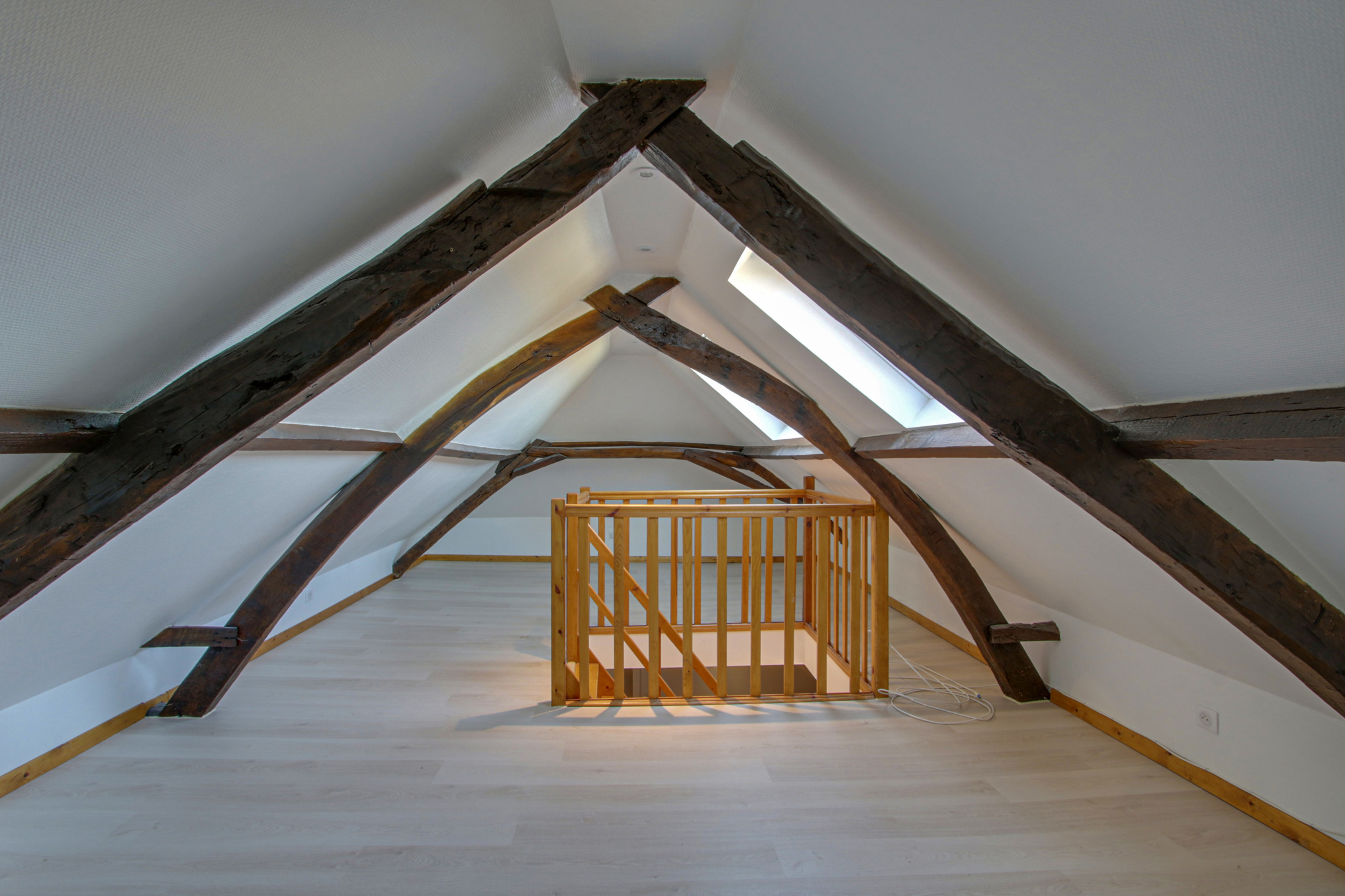 De rechtervleugel, bereikbaar via een trap vanuit een slaapkamer op de begane grond, heeft een extra slaapkamer. Tot slot leidt de linkervleugel, bereikbaar via een intrekbare trap in de garage, naar een multifunctionele ruimte die kan worden gebruikt als kantoor of zolder.