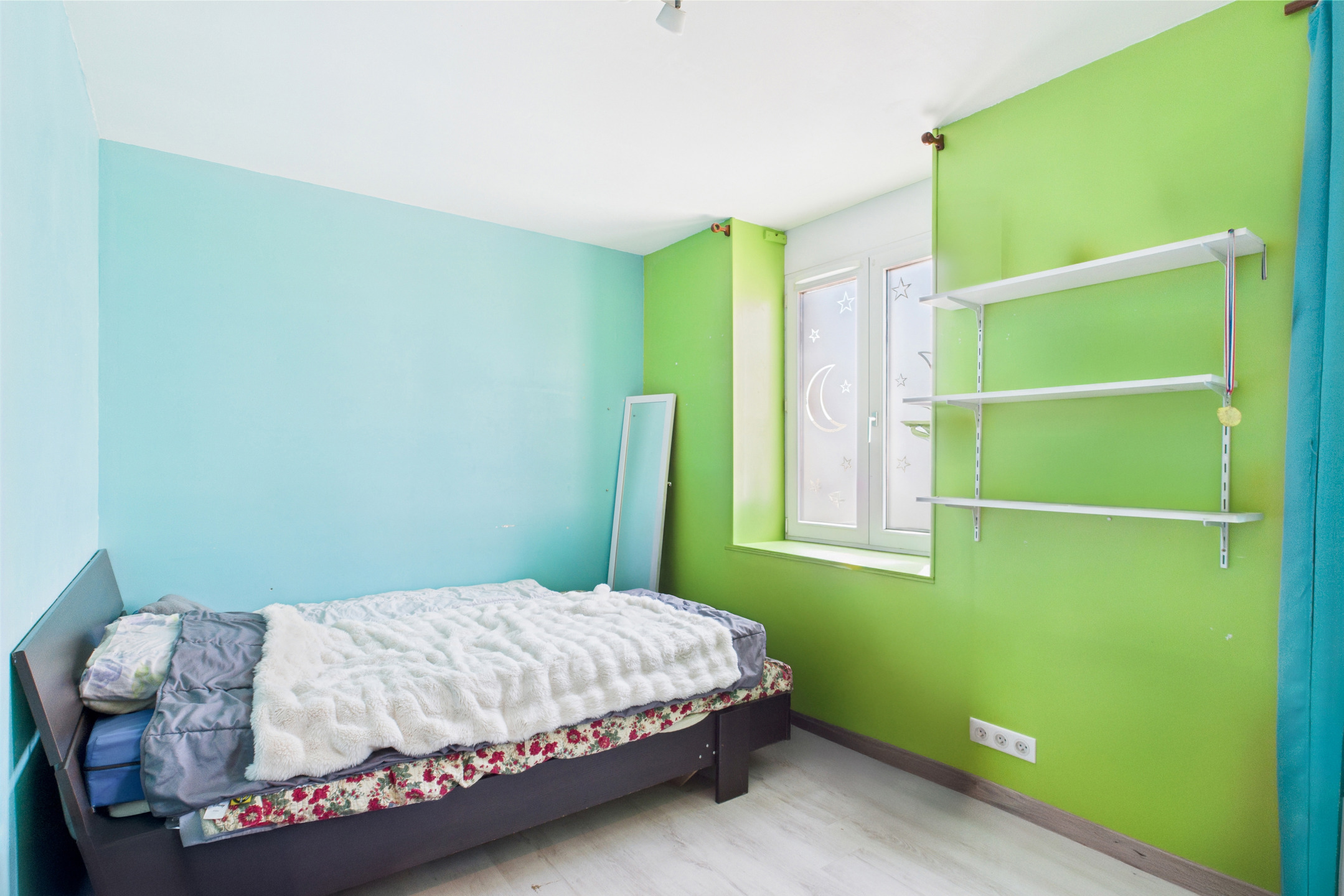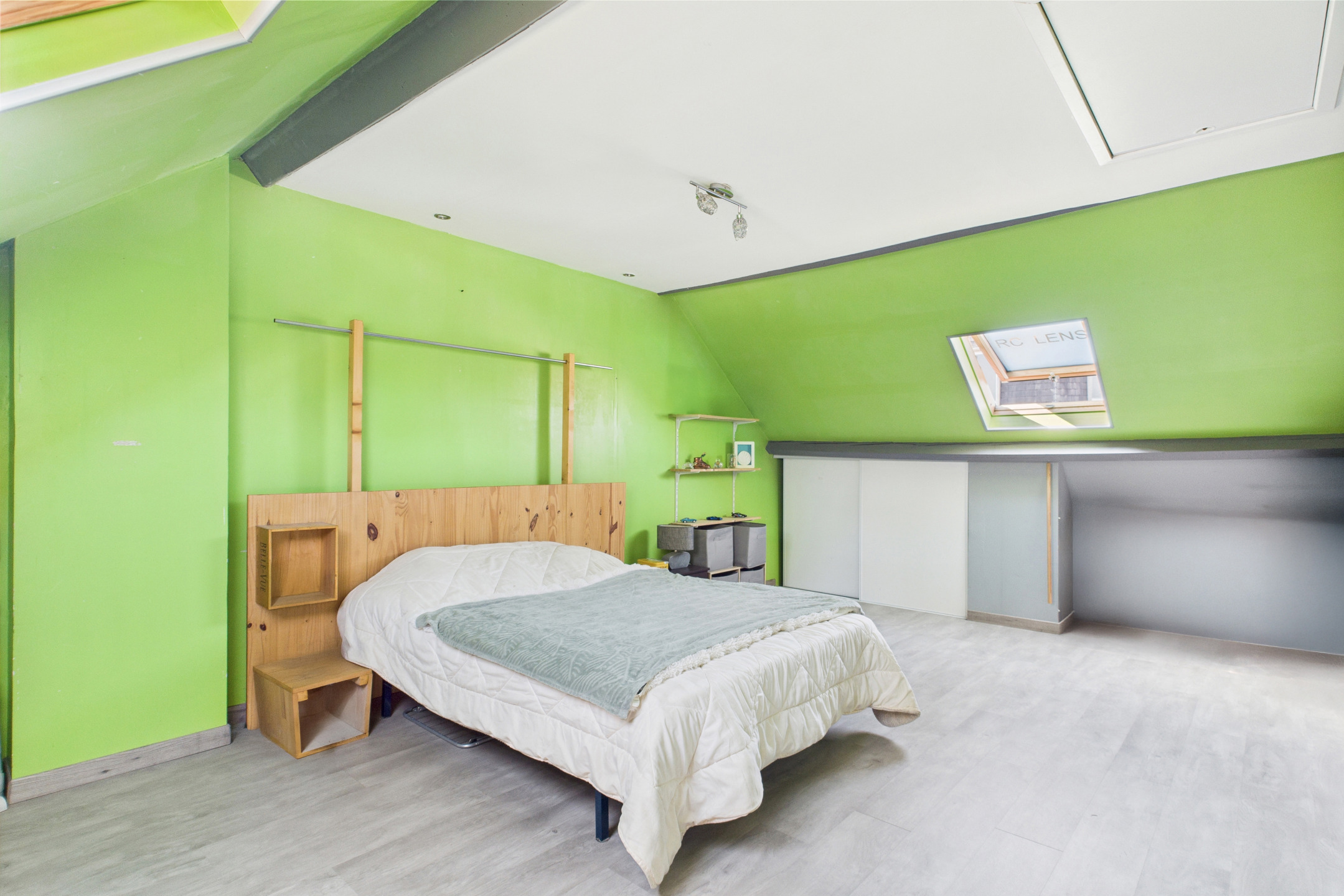 Au deuxième étage, le grenier aménagé, accessible par escalier fixe, offre une troisième chambre avec placards intégrés et deux Velux, parfaite pour un espace nuit confortable ou un bureau.