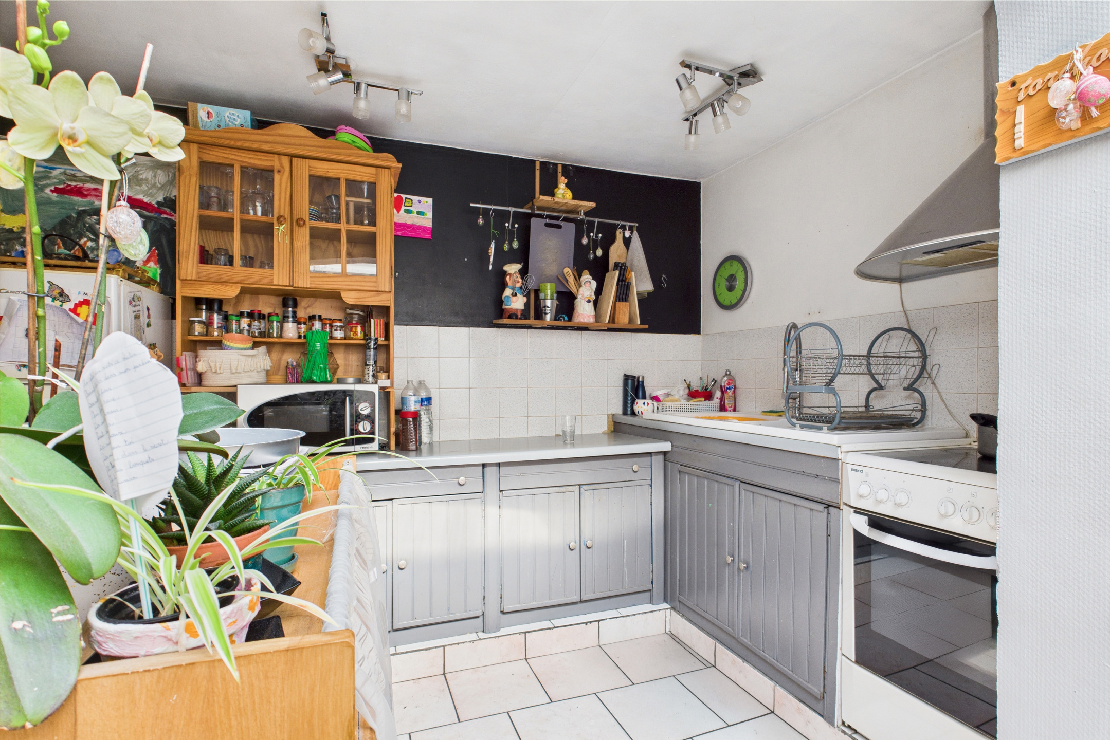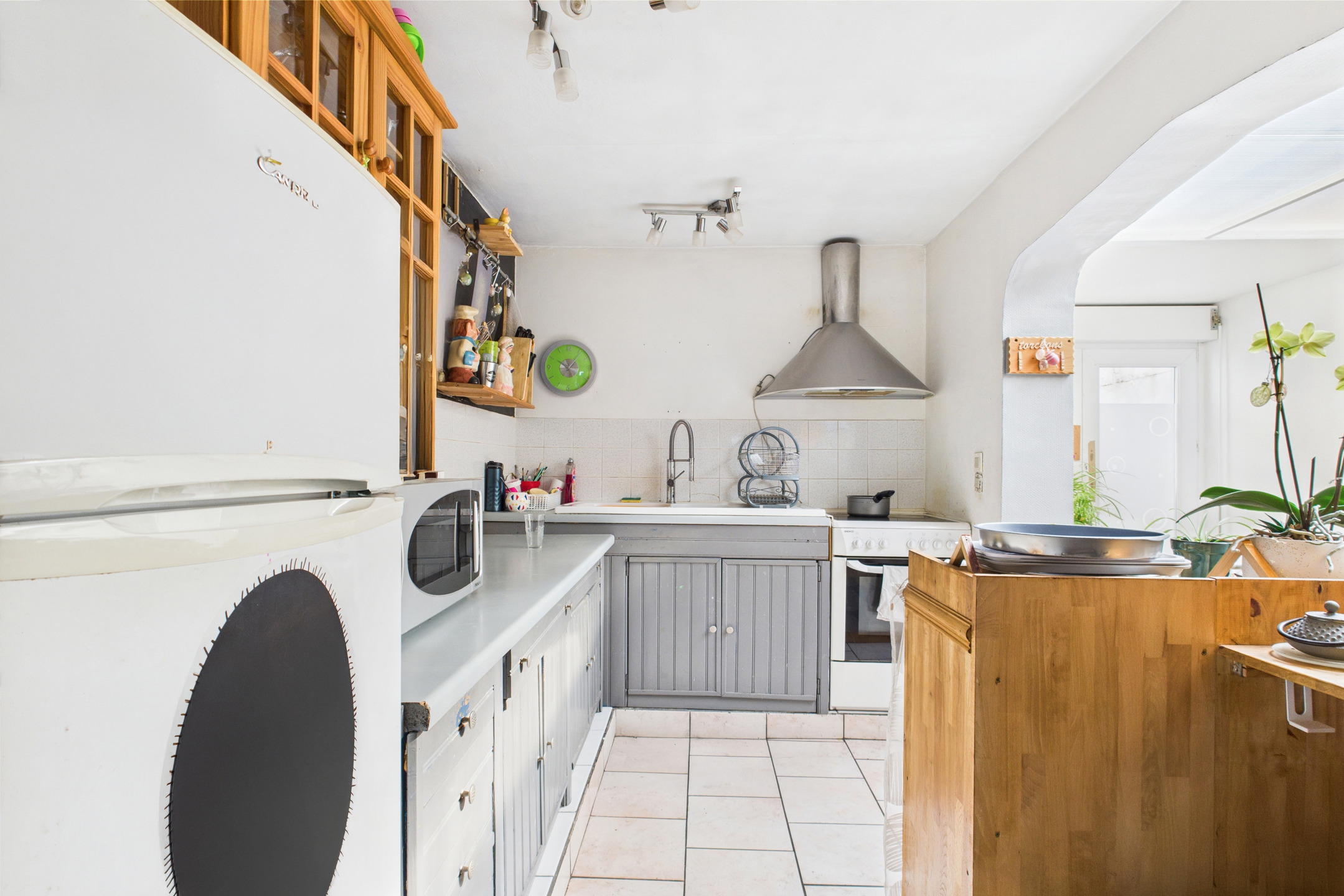 Le bien bénéficie de châssis PVC double vitrage partout, sauf dans la salle de bains (bois double vitrage), d’un carrelage au rez, de parquet aux étages, du chauffage au gaz par convecteurs en bas, électrique à l’étage, d’un jardin avec deux annexes (rangement + extension salle de bain) et d’une cave saine.