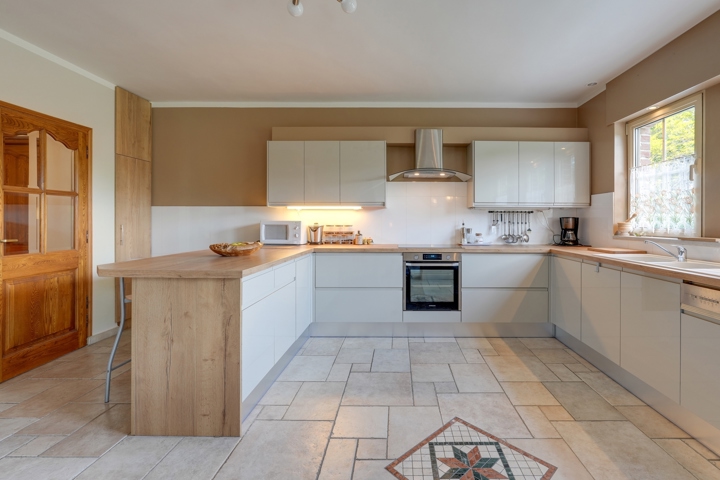 Équipements et conforts : Chauffage au mazout, châssis en aluminium (double vitrage), électricité conforme, système d’alarme, persiennes motorisées, adoucisseur d’eau, citerne d’eau de pluie (5.000 L), parlophone, feu ouvert, portail motorisé.