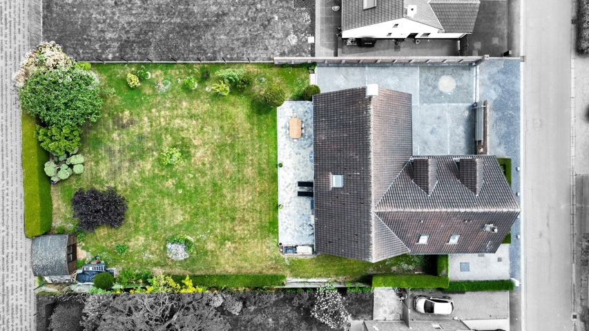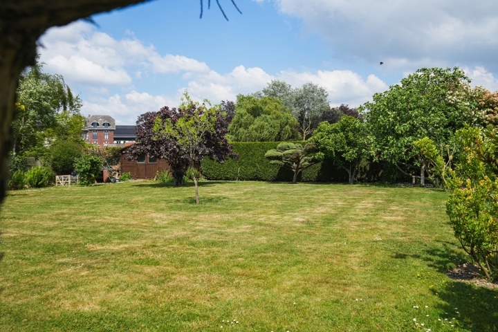 Depuis cette pièce centrale, la vue s’ouvre sur un magnifique jardin arboré, parfaitement entretenu, et une vaste terrasse qui prolonge la sensation d’espace et de sérénité. Un véritable havre de paix, niché dans une rue calme, tout en restant à proximité immédiate des commodités.