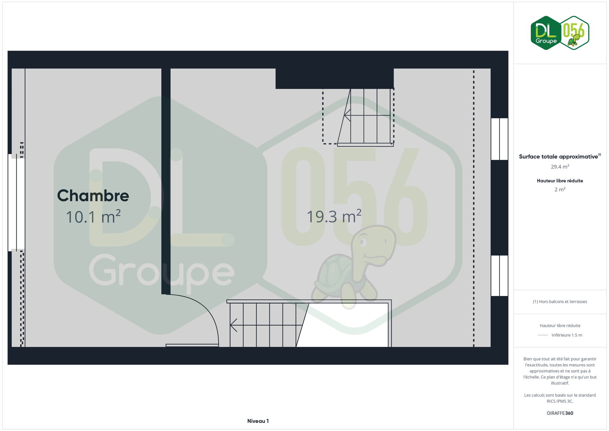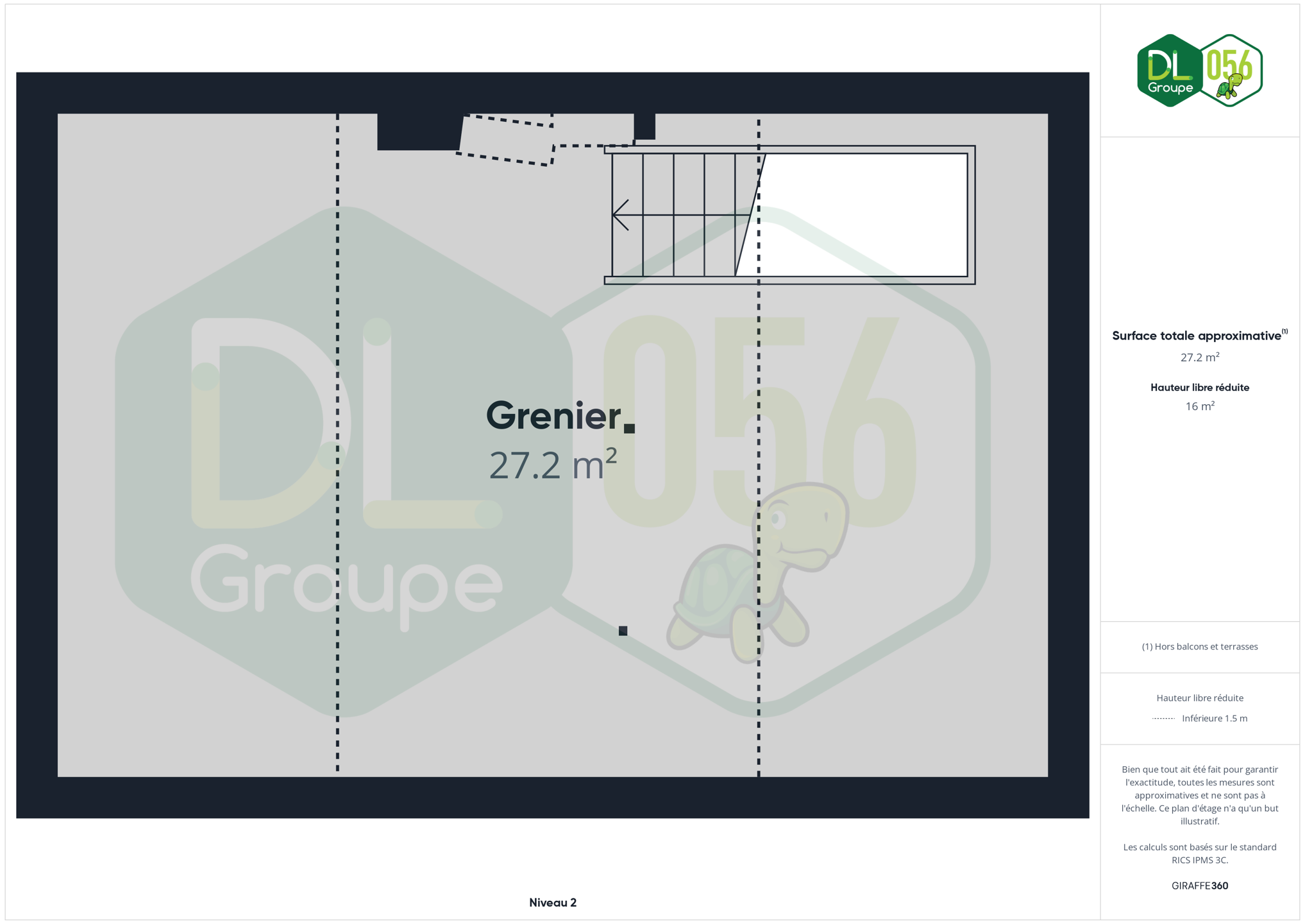 2ème Etage : Un grand grenier de 26m² avec possibilité d`aménager en chambre, accessible par un escalier fixe.
