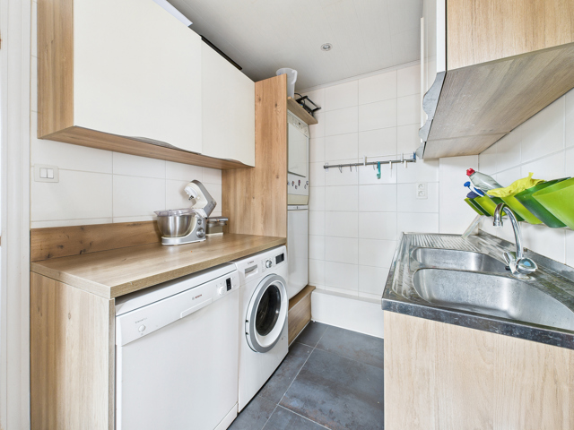 Le rez-de-chaussée se compose d’un hall d’entrée avec accès direct à l’étage, d’un agréable séjour avec meubles sur mesure, d’une cuisine équipée (taque induction, hotte, frigo, four, évier, coin repas, meubles de rangement) donnant sur une arrière-cuisine avec sortie vers l’extérieur.