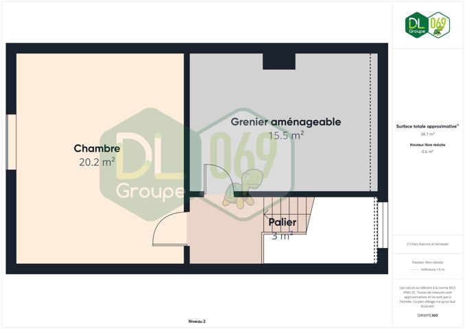 Le deuxième étage dispose d’un hall de nuit, d’une troisième chambre avec placards intégrés, ainsi que d’un grenier aménageable offrant la possibilité de créer une chambre supplémentaire, et d’un grenier de rangement.