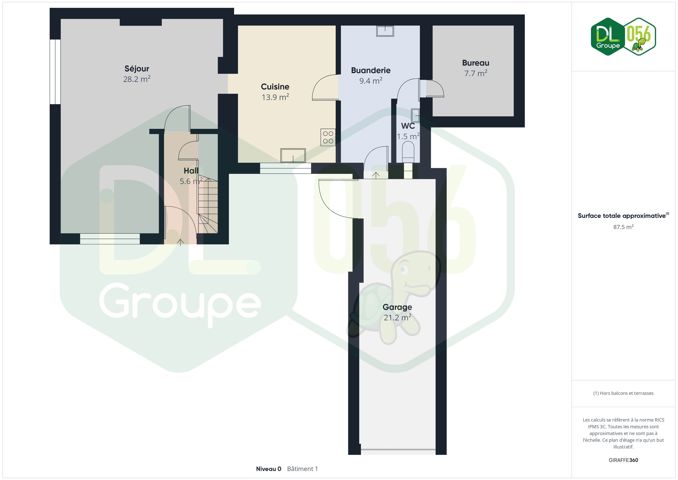 Au REZ : Un hall d’entrée avec escalier apparent, une cave saine, un séjour en « L » (salon et salle à manger), une cuisine équipée attenante (plaque de cuisson, hotte, four, lave-vaisselle, double évier, coin repas et nombreux rangements), une buanderie/chaufferie avec espace vestiaire, un bureau, un WC avec lave-mains. De plus un grand garare pour 1 voiture vient compléter cet étage.