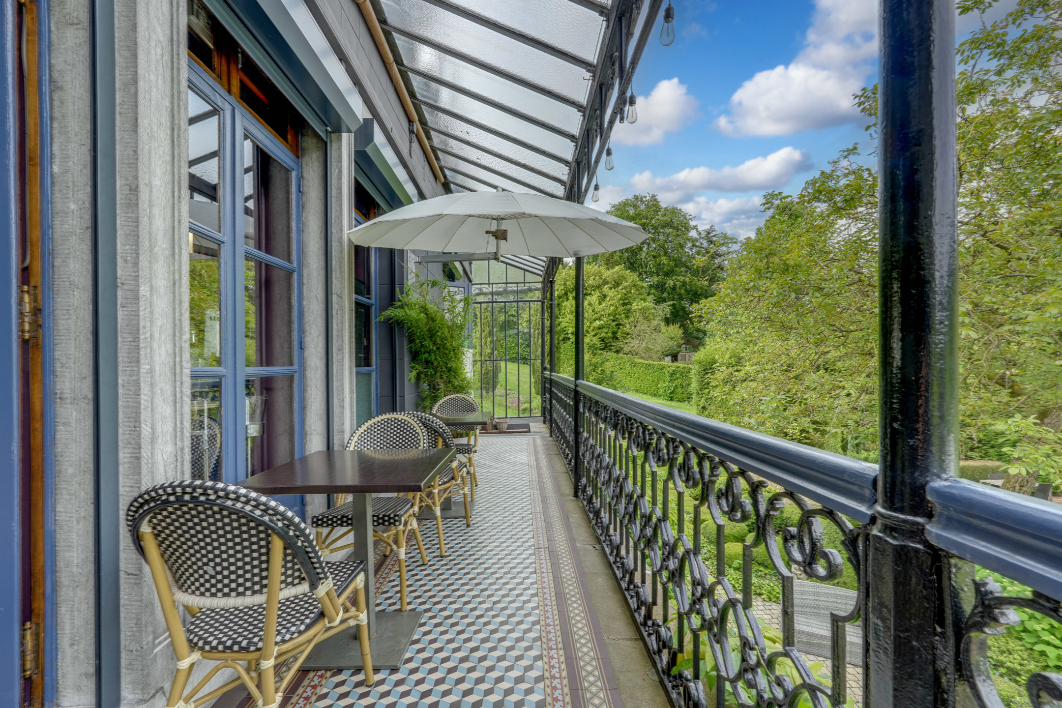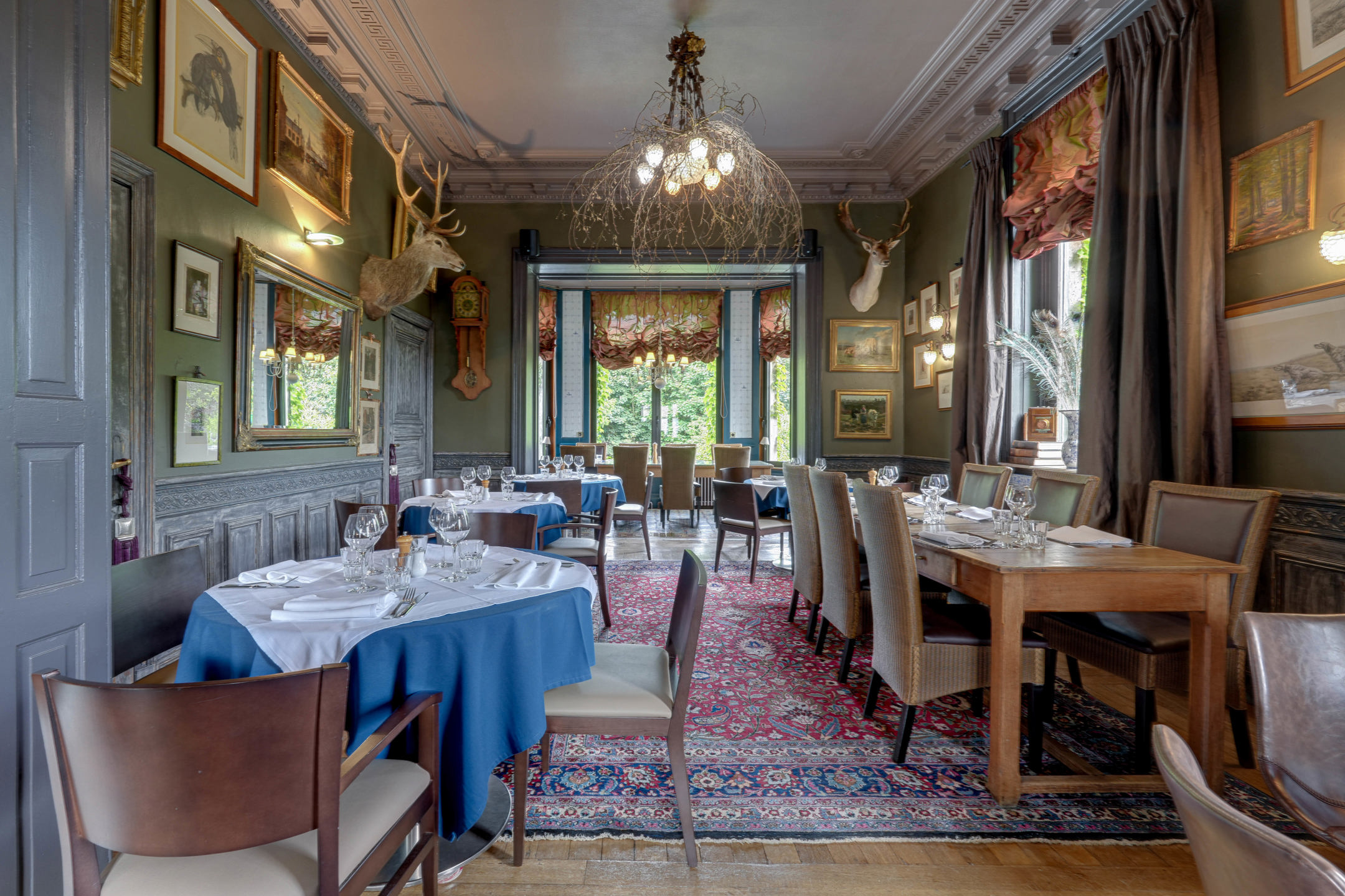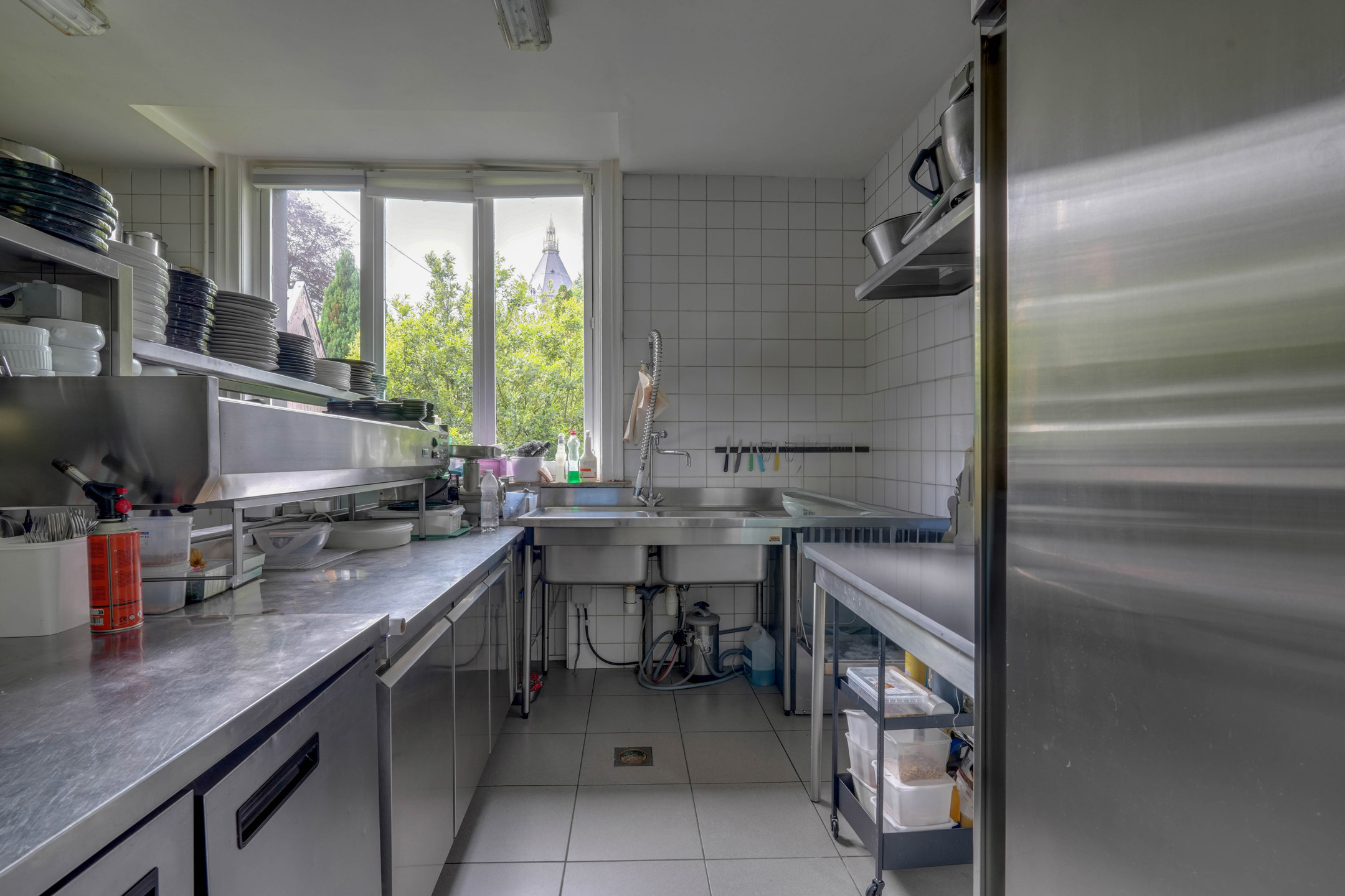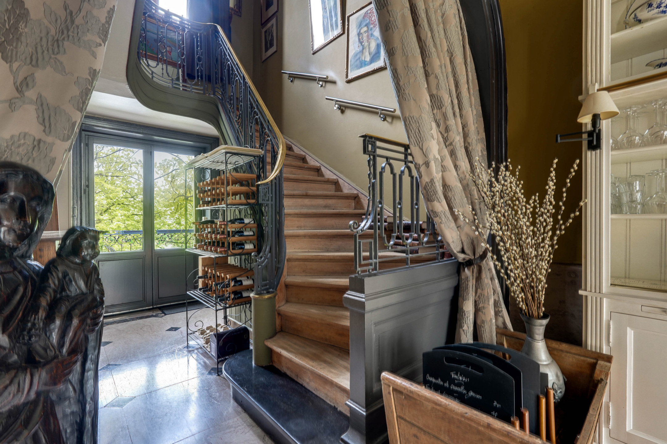 Rez de chaussée : Le restaurant dispose de deux spacieuses salles, d’une cuisine professionnelle, d’un vestibule avec toilettes et d’une terrasse offrant une vue imprenable sur le parc.