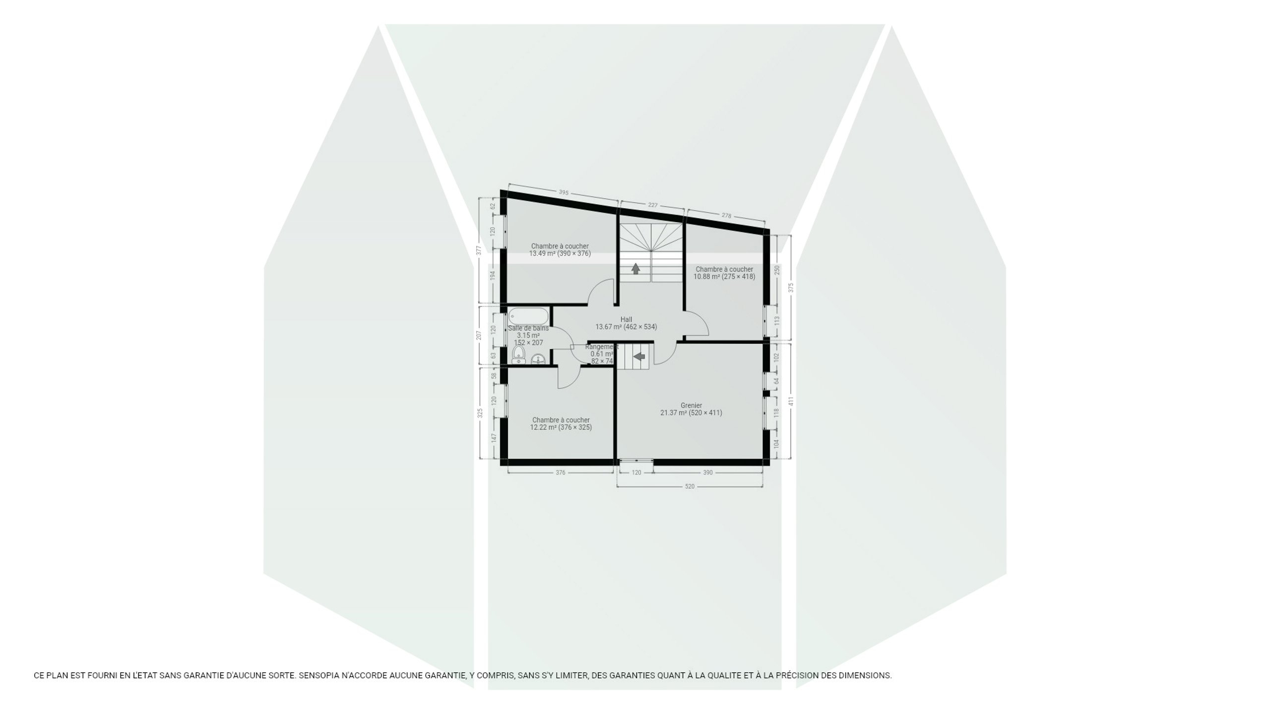 2ème étage : 3 chambres, 1 salle de bain, et un grenier de rangement.
