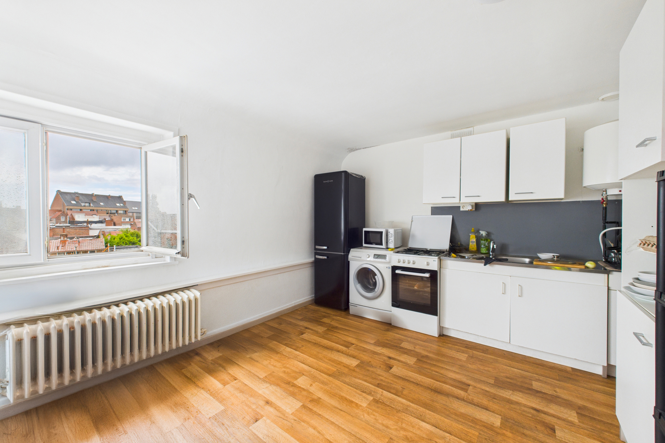 Appartement une chambre situé au dernier étage d’une résidence en plein centre-ville. Il se compose au 3e étage d’un hall d’entrée desservant un séjour lumineux (salon et salle à manger), une grande cuisine semi-équipée (plaque au gaz, four, évier, rangements), une chambre confortable de 13?m² et une salle de bains avec douche, meuble lavabo et WC.