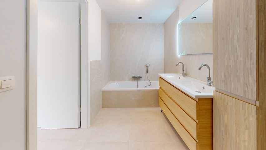 Les huit appartements sont équipés chacun de cinq panneaux photovoltaïques avec onduleurs individuels, d’une pompe à chaleur individuelle, d’une citerne d’eau de pluie, d’un groupe hydrophore individuels, de triple vitrage anti-chaud-froid, de ventilation double flux, et bien d’autres équipements modernes. Le label PEB A++, déjà obtenu, garantit une consommation quasi nulle et une empreinte carbone négative.