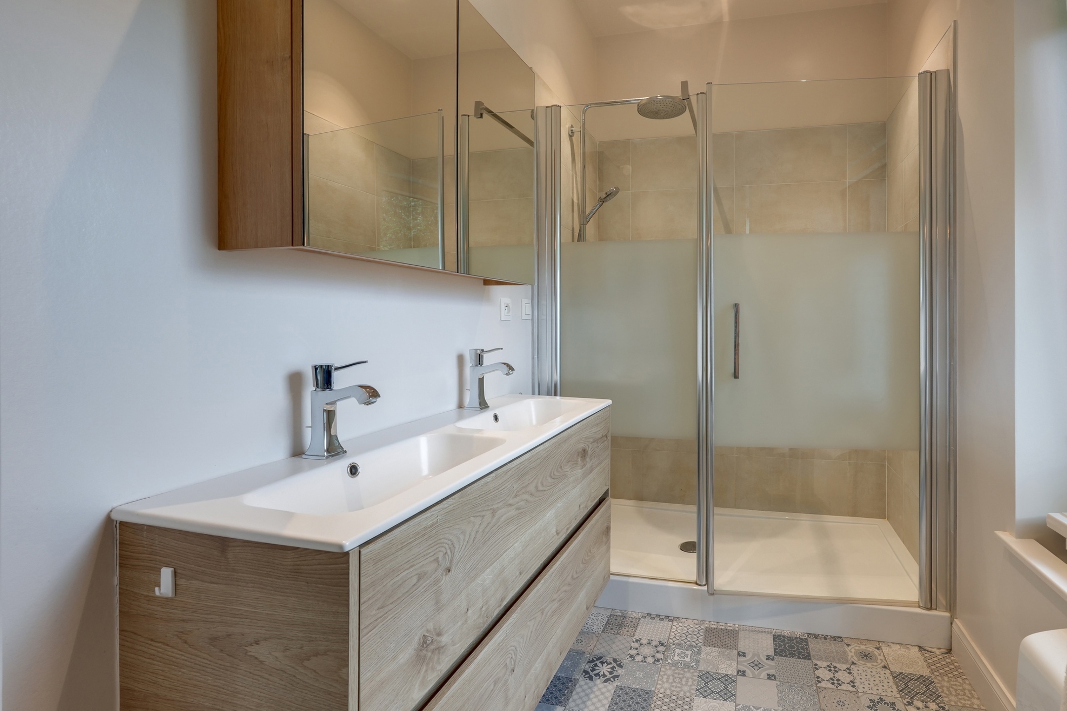 Le 2ème étage a été aménagé en 2021 et regroupe un hall de nuit avec espace salon, deux chambres et une salle-de-douche.