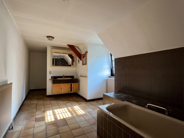 - Eerste slaapkamer van +/- 30 m² met badkamer van +/- 14 m²