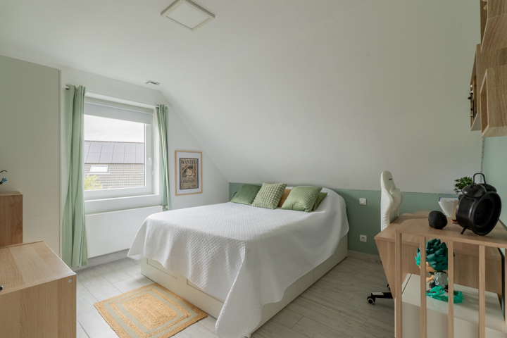 Construite en 2016 par Tybo, cette villa bénéficie d’un niveau de confort remarquable. Le chauffage central au gaz par le sol au rez-de-chaussée, associé à une chaudière à condensation Vaillant et un boiler intégré, assure une performance énergétique optimale. L’ensemble est complété par des châssis en PVC double vitrage, une VMC double flux neuve, une électricité conforme et un adoucisseur d’eau. La maison dispose également d’une citerne d’eau de pluie, d’un système d’alarme avec vidéosurveillance, ainsi que de 14 panneaux photovoltaïques garantissant une excellente autonomie énergétique. Les finitions intérieures allient élégance et modernité, avec un carrelage contemporain au rez-de-chaussée et un revêtement imitation parquet à l’étage. Enfin, son PEB A atteste de son efficacité énergétique exemplaire.