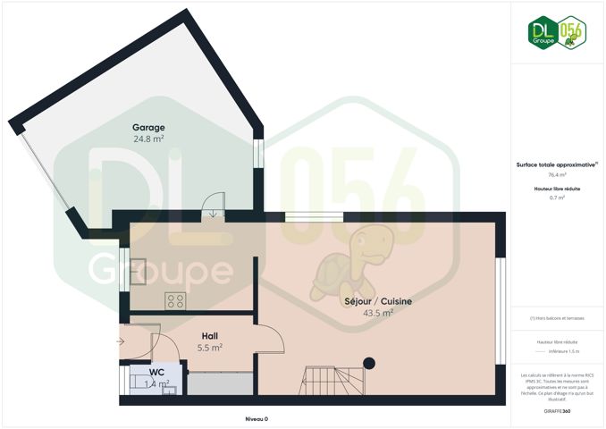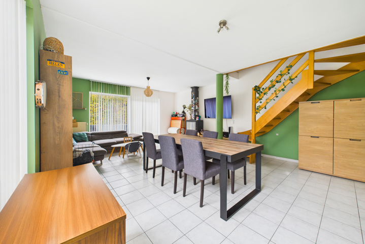 Au REZ : un hall d’entrée avec espace vestiaire, un WC avec lave-mains, un lumineux séjour avec escalier apparent (salon et salle à manger), une cuisine équipée attenante (plaque de cuisson au gaz, hotte télescopique, four, lave-vaisselle, frigo, coin repas et nombreux rangements). Un garage carrelé avec espace chaufferie et laverie.