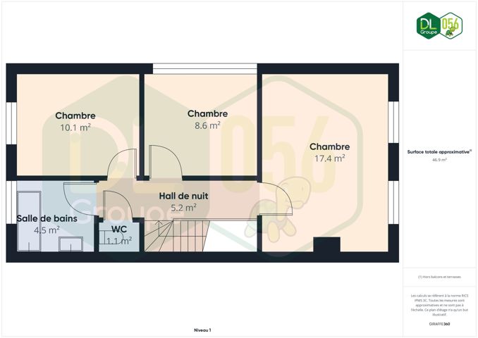 Au 2ème étage : Grenier de rangement, accessible par un escalier escamotable situé sur le hall de nuit.