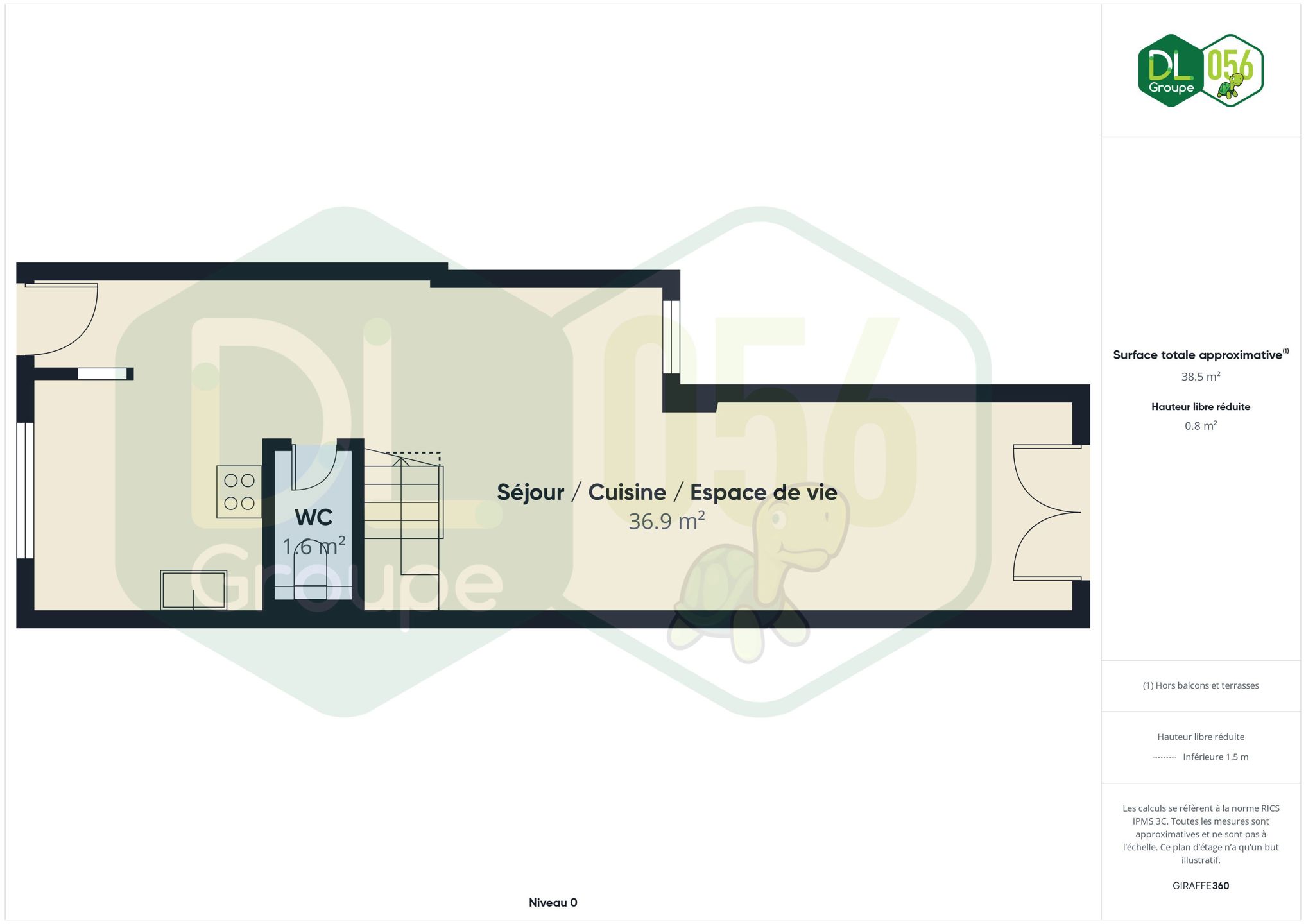 Au REZ : Un hall d’entrée desservant une cuisine équipée ouverte (plaque de cuisson, hotte, four, évier, lave-vaisselle et rangements intégrés), un séjour (salon et salle à manger) avec escalier apparent. La pièce de vie est baignée de lumière par toutes ses ouvertures.