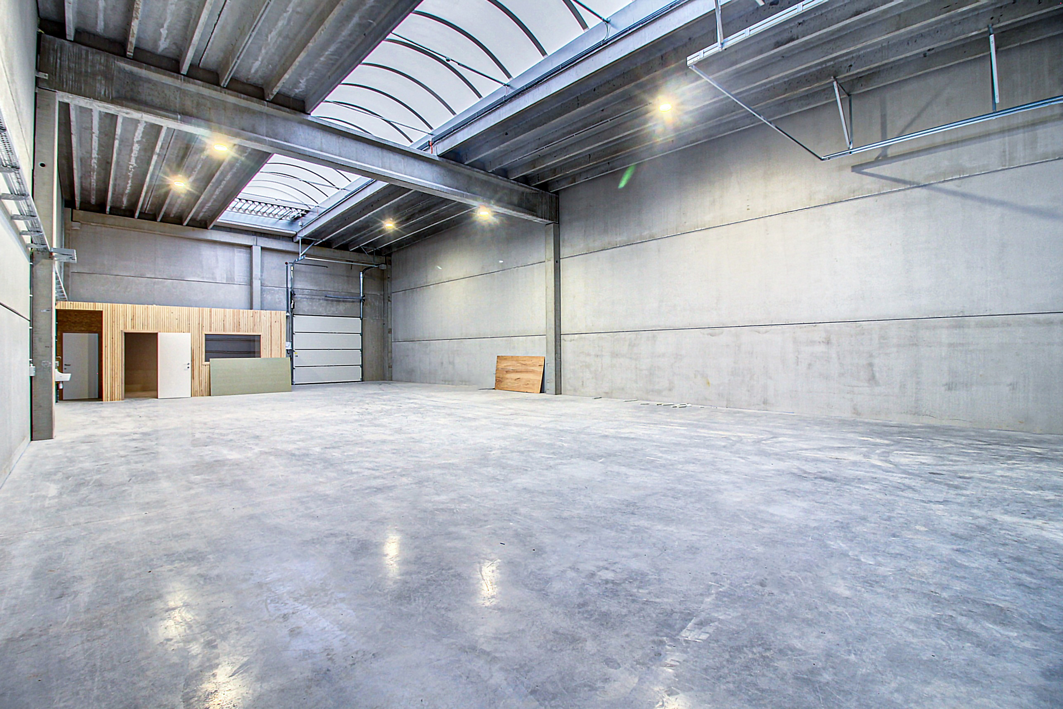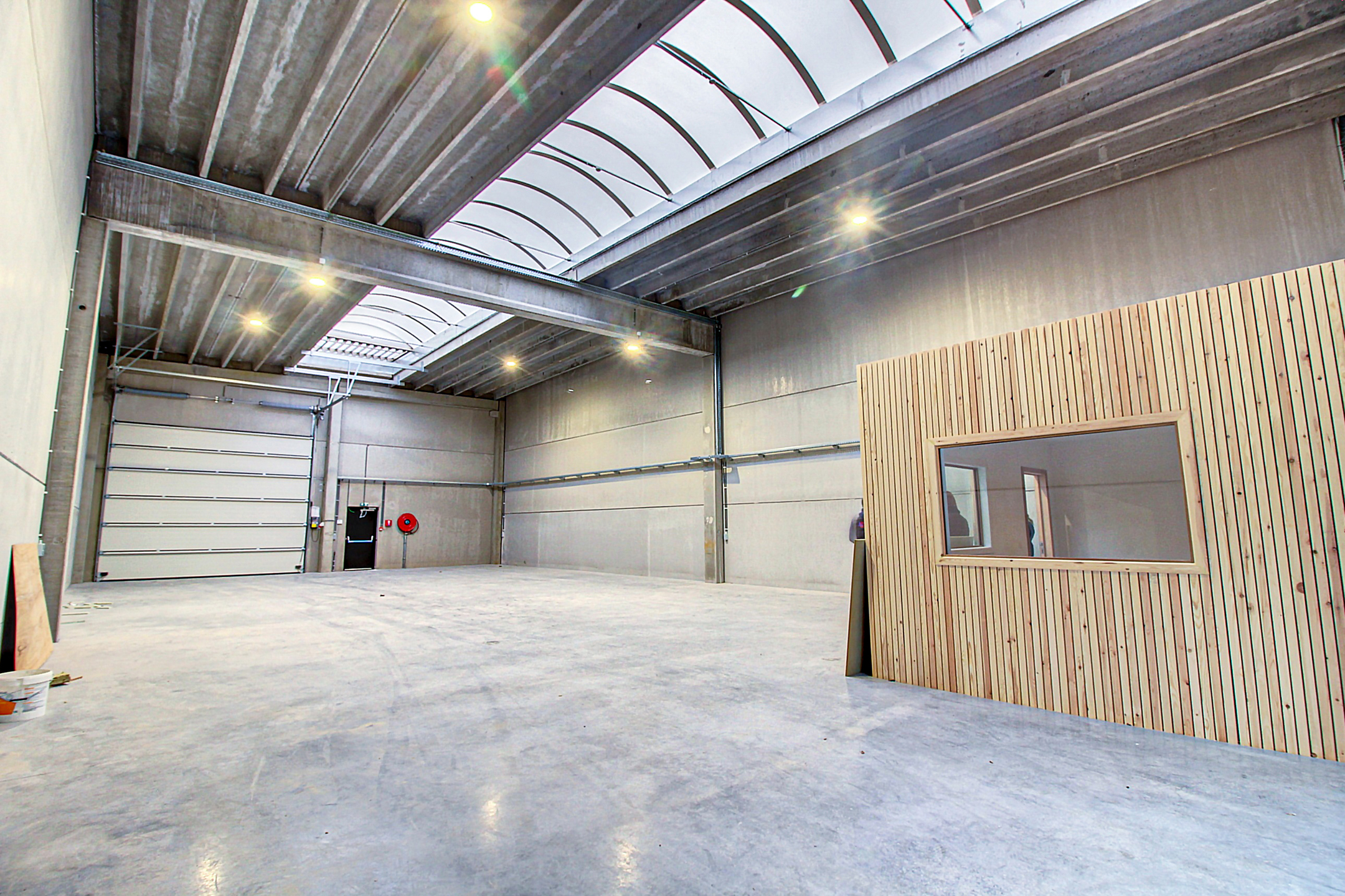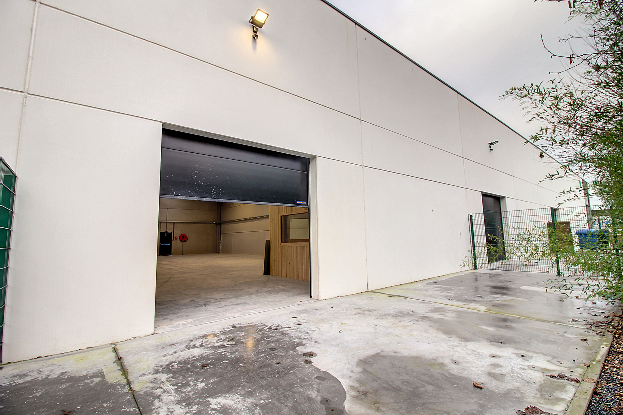Entrepôt neuf de 300m² (12m de large sur 24m de long),Accès arrière donnant sur un espace extérieur clôturé de 60m²,Bureau aménagé et wc séparé avec point d`eau,Un emplacement de parking devant chaque entrepôt.Caractéristiques:Loyer HTVA,Porte de 4m de haut sur 3m de large,Construction entièrement en béton y compris la toiture (isolée),Alarme incendie et intrusion,Triphasé [..]