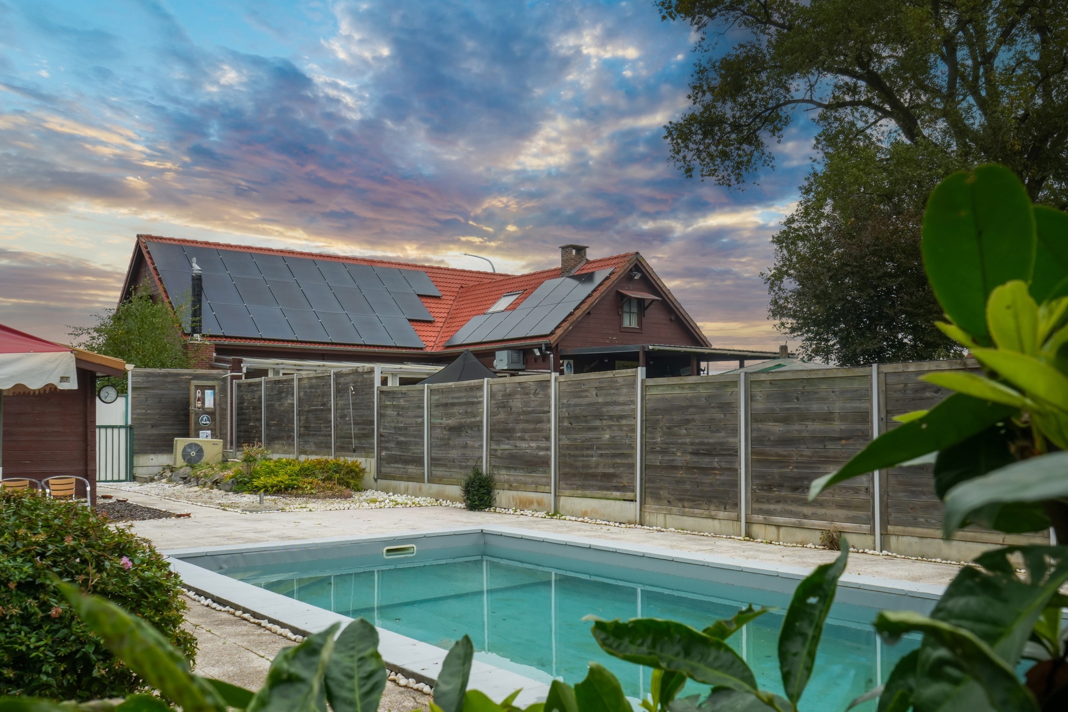 Technische kenmerken: 44 zonnepanelen, houten ramen met dubbel glas, mazoutketel, verwarmd zwembad met warmtepomp, alarmsysteem en camera’s (Verisure).