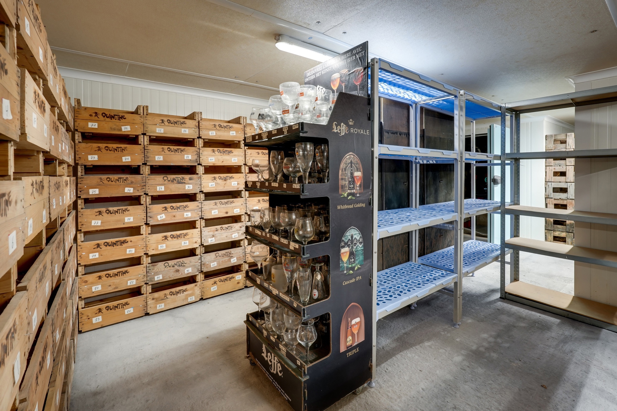 Vanuit de achterkeuken is er toegang tot de kelder, waar zich de koelkamer en de technische ruimte van het zwembad bevinden.