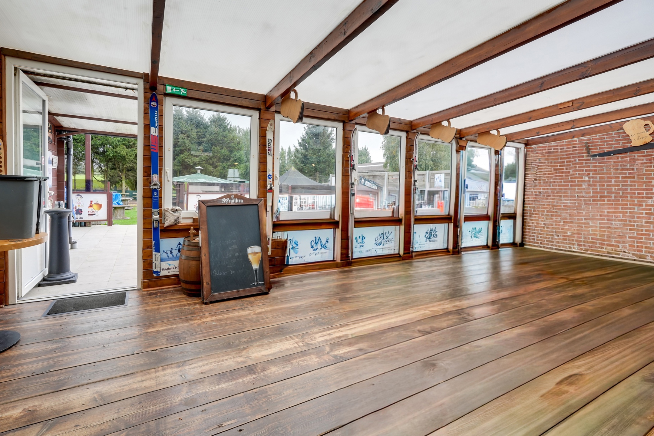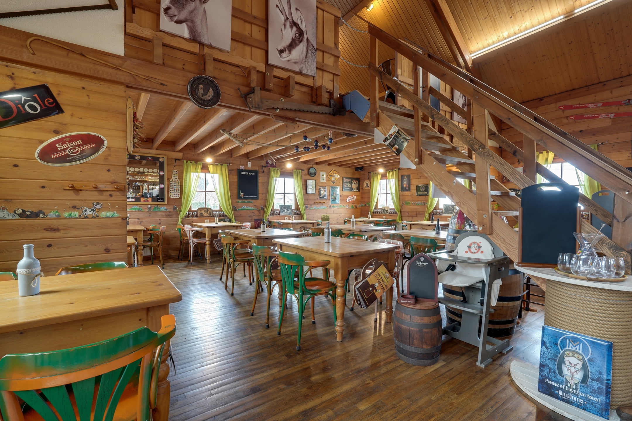 De hoofdingang geeft toegang tot een grote zaal, aangevuld met een veranda en een verdieping. De volledige ruimte biedt plaats aan ongeveer 100 gasten. Een centrale bar is eveneens aanwezig.