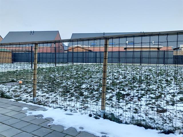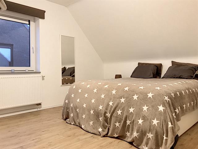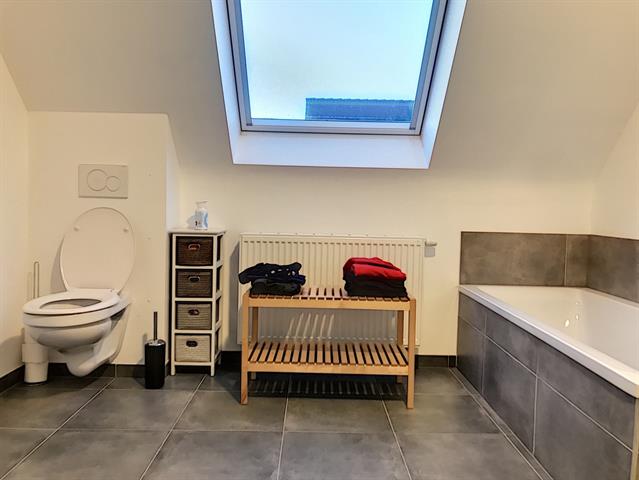 Rez-de-chaussée: Hall d`entrée, WC séparé suspendu avec lave-mains,Beau séjour avec cuisine ouverte équipée comprenant four, hotte télescopique, taque vitrocéramique, double évier et meubles de rangement,Accès au garage par la cuisine avec coin rangement sous l`escalier,Baie-vitrée donnant sur la terrasse et le jardin clôturé,Garage avec porte sectionnelle motorisée.A l`étage: [..]