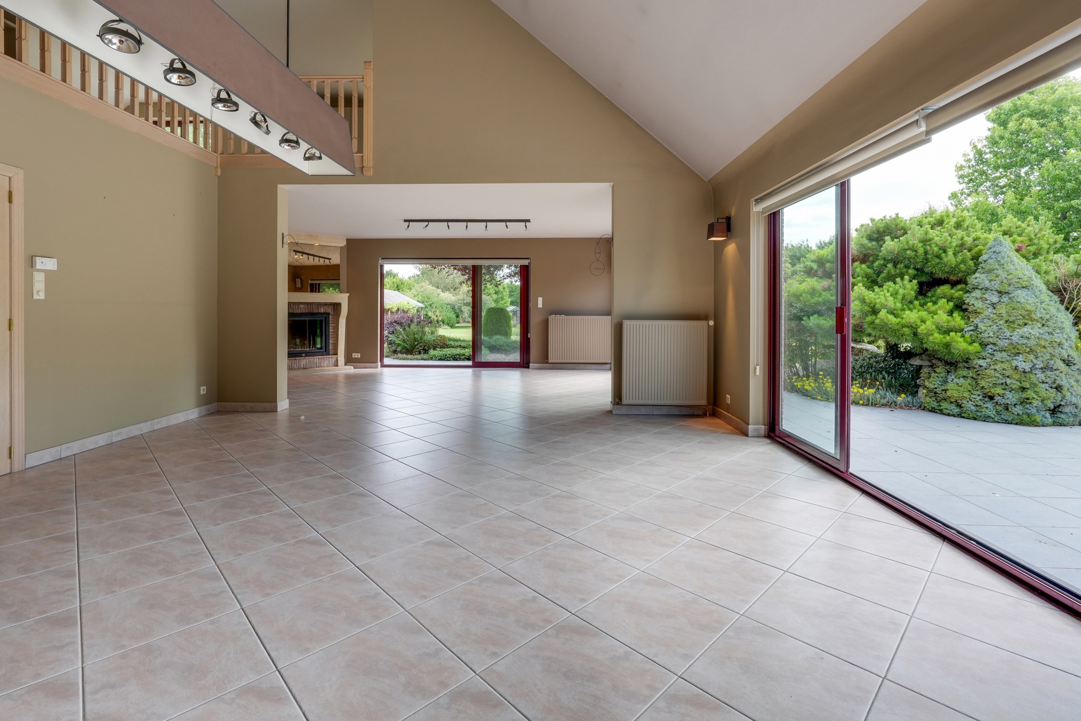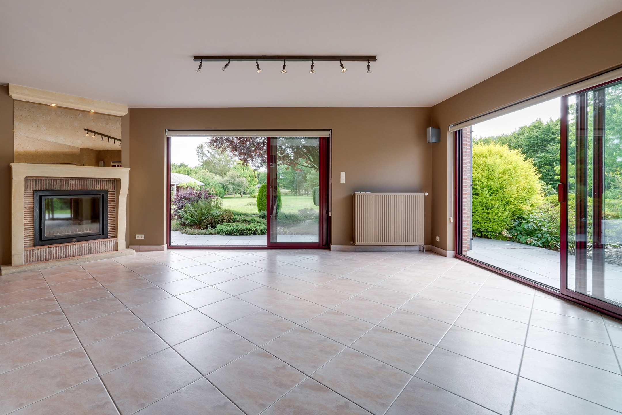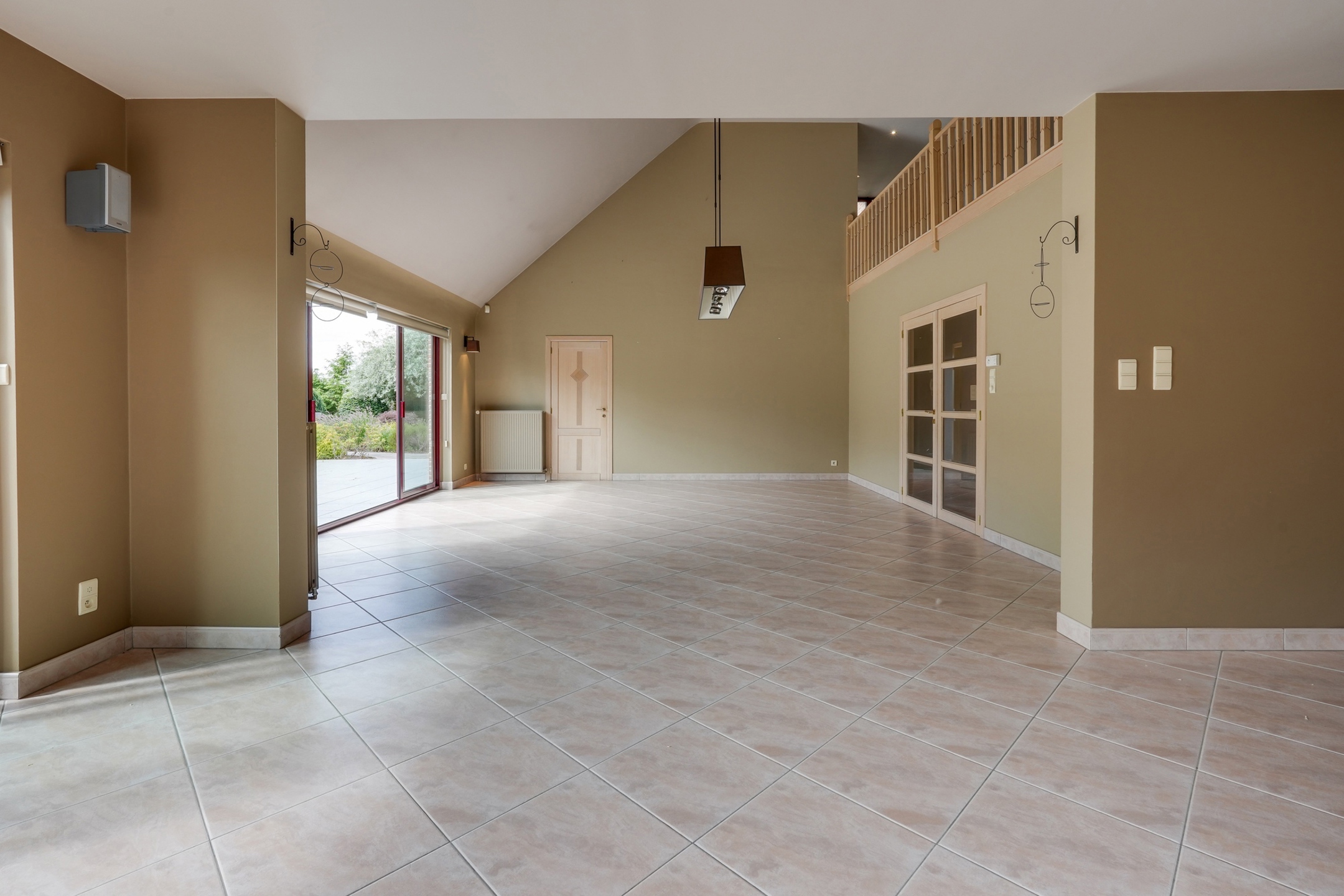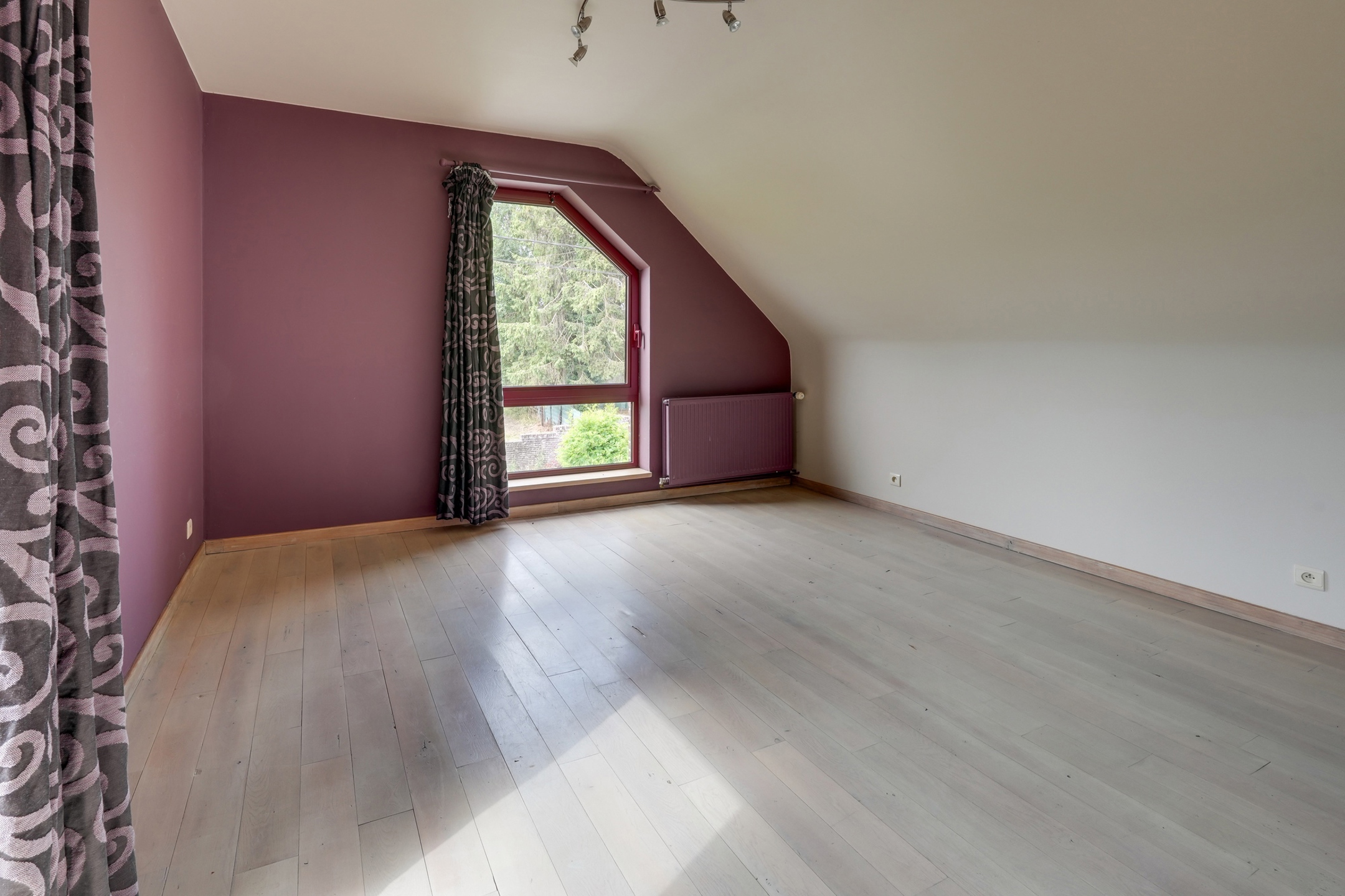 Cette maison spacieuse offre un hall d’entrée avec WC séparé, un système d’alarme, un garage, un bureau, une cuisine hyper équipée ouverte sur la salle à manger et le salon avec feu à cassette. Une première chambre avec dressing et accès terrasse se trouve également au rez-de-chaussée. À l’étage en parquet massif, on découvre trois chambres, une salle de bain complète et un grenier isolé. La maison comprend aussi caves, cave à vin et vide sanitaire. Le jardin aménagé dispose de deux terrasses, d’un étang, d’un hangar, de boxes à chevaux, d’un chenil, d’un terrain de pétanque et d’un abreuvoir automatique. Un drainage entoure la maison. Elle est équipée d’une fosse septique, d’un dégraisseur, d’une cuve à mazout et de deux cuves d’eau de pluie. Un terrain de 3 hectares de prairies est également mis à disposition.