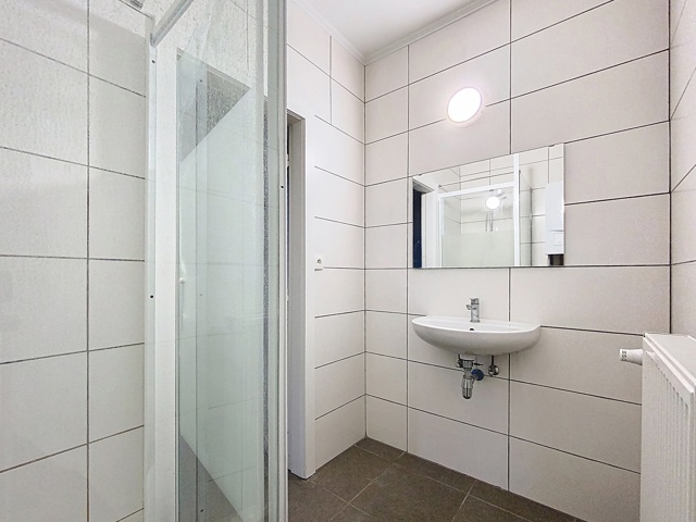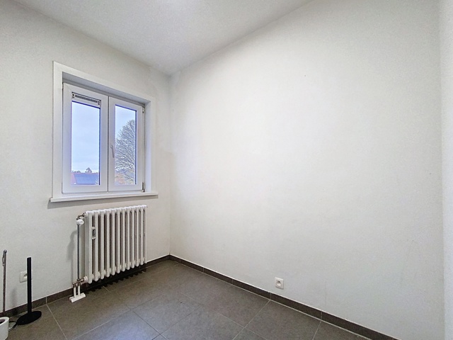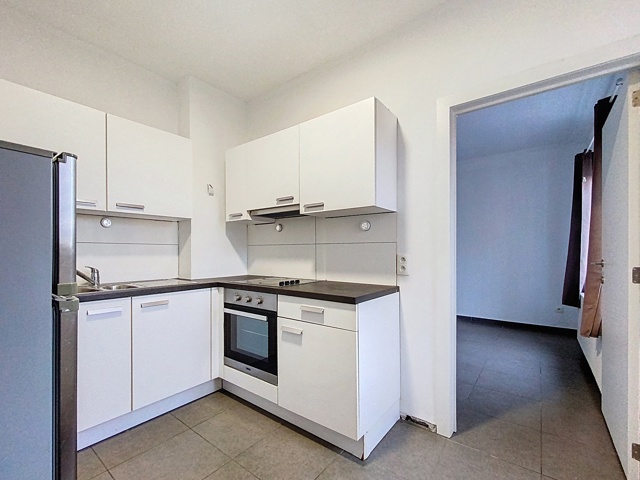 Hall d`entrée,Séjour avec salon et salle à manger,Cuisine équipée avec four, taque vitro, hotte et frigo avec congélateurSalle de bains avec douche, lavabo et emplacement machine à laver,WC séparés,Une chambre et un bureau.Caractéristiques :Chauffage central au gazChâssis pvc double vitrageSpots et luminaires installés partoutSitué en centre-villePas de charges communes