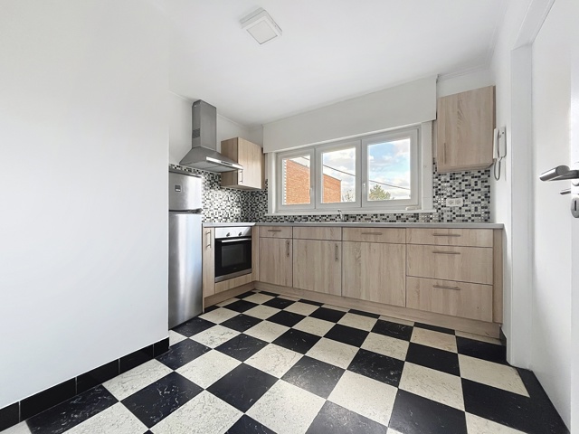 Cuisine équipée neuve avec four, taque vitrocéramique, hotte, lave-vaisselle, frigo avec freezer,