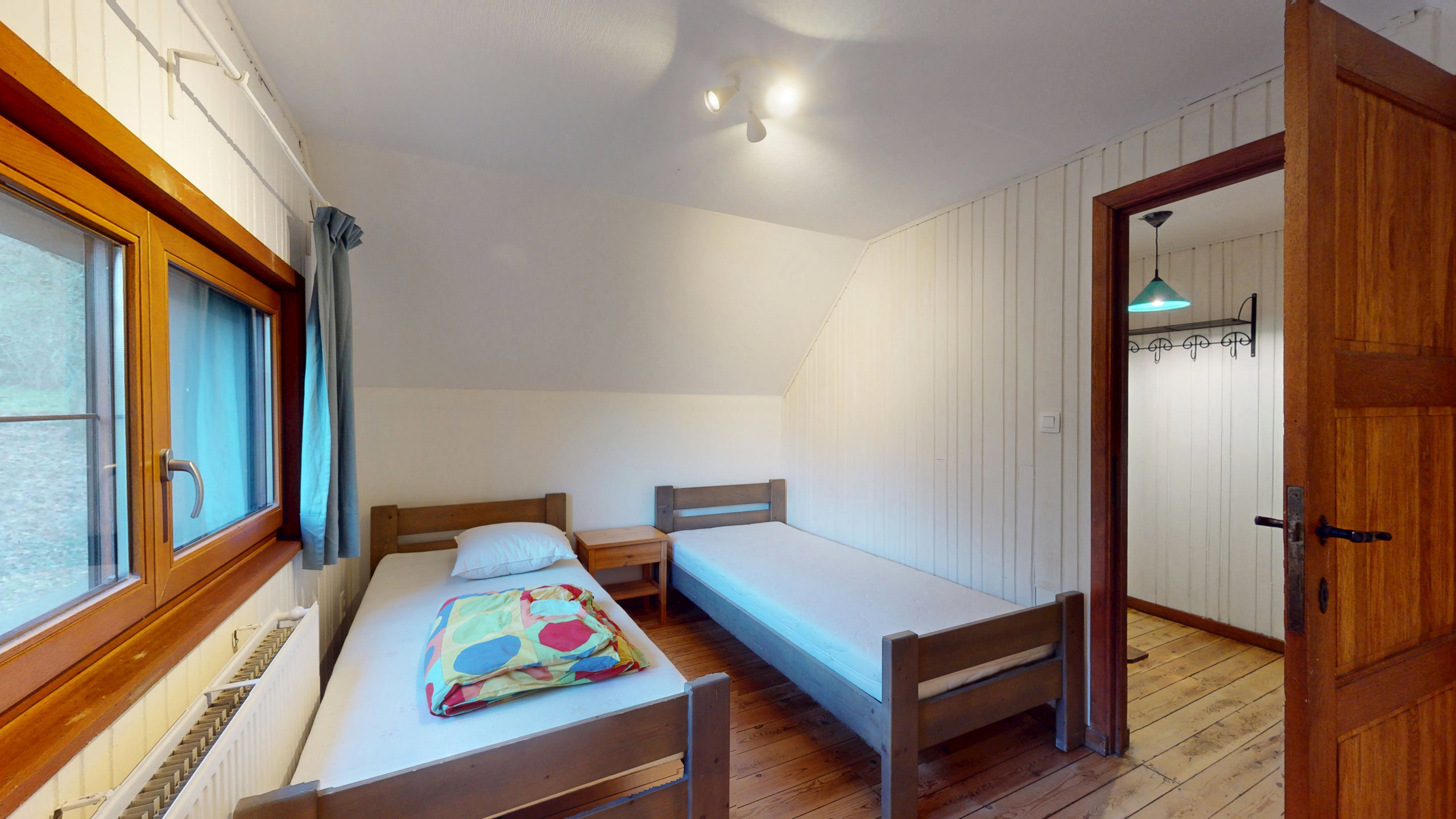 Hall de nuit de +/- 6,8 m² donnant accès à deux chambres de 13,7 et 12m² avec placards.