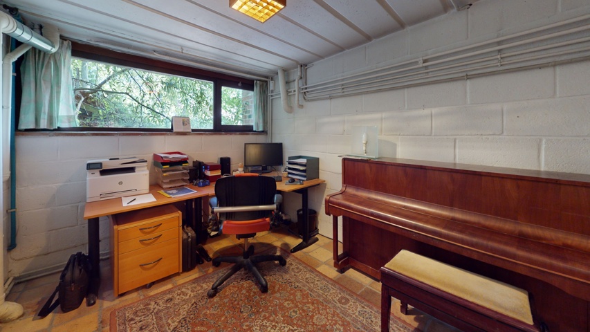 • Hall de ± 7,5 m² donnant accès à un bureau de ± 10 m² et une buanderie / espace de stockage de ± 26 m² avec accès au jardin