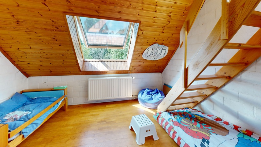 • Trois chambres de ± 16, 14 et 12 m², chacune équipée d’une mezzanine d’environ 4 m² chacune
