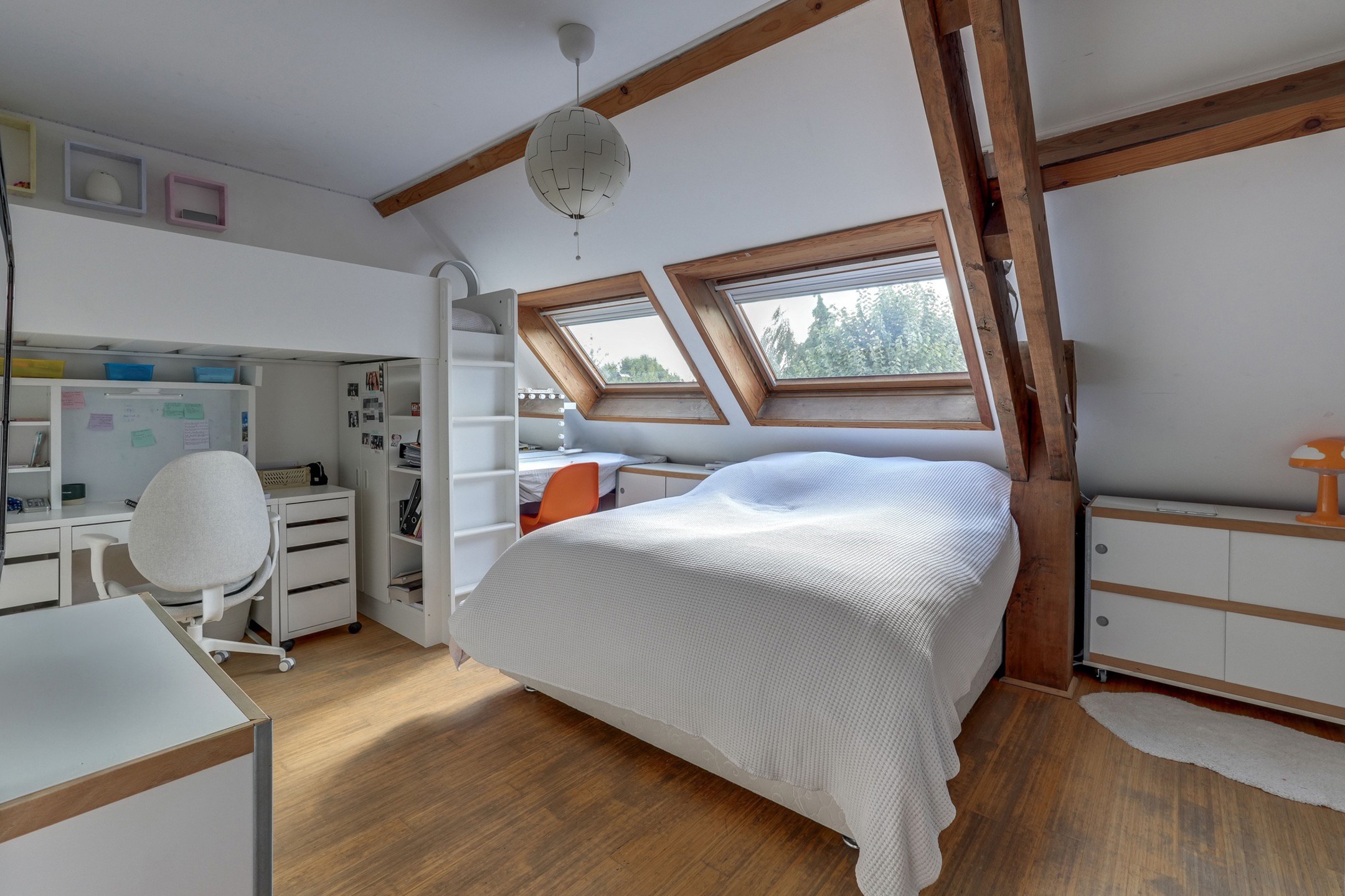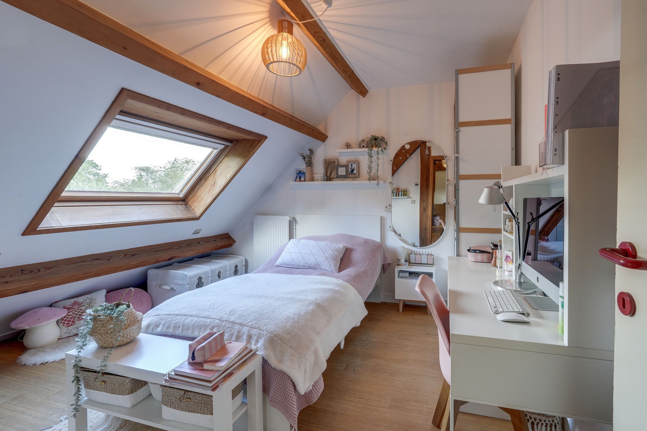 L’étage propose un espace de travail en mezzanine, idéal pour un bureau ou un salon de lecture. Vous y trouverez également deux chambres supplémentaires, un dressing et une salle de bain.